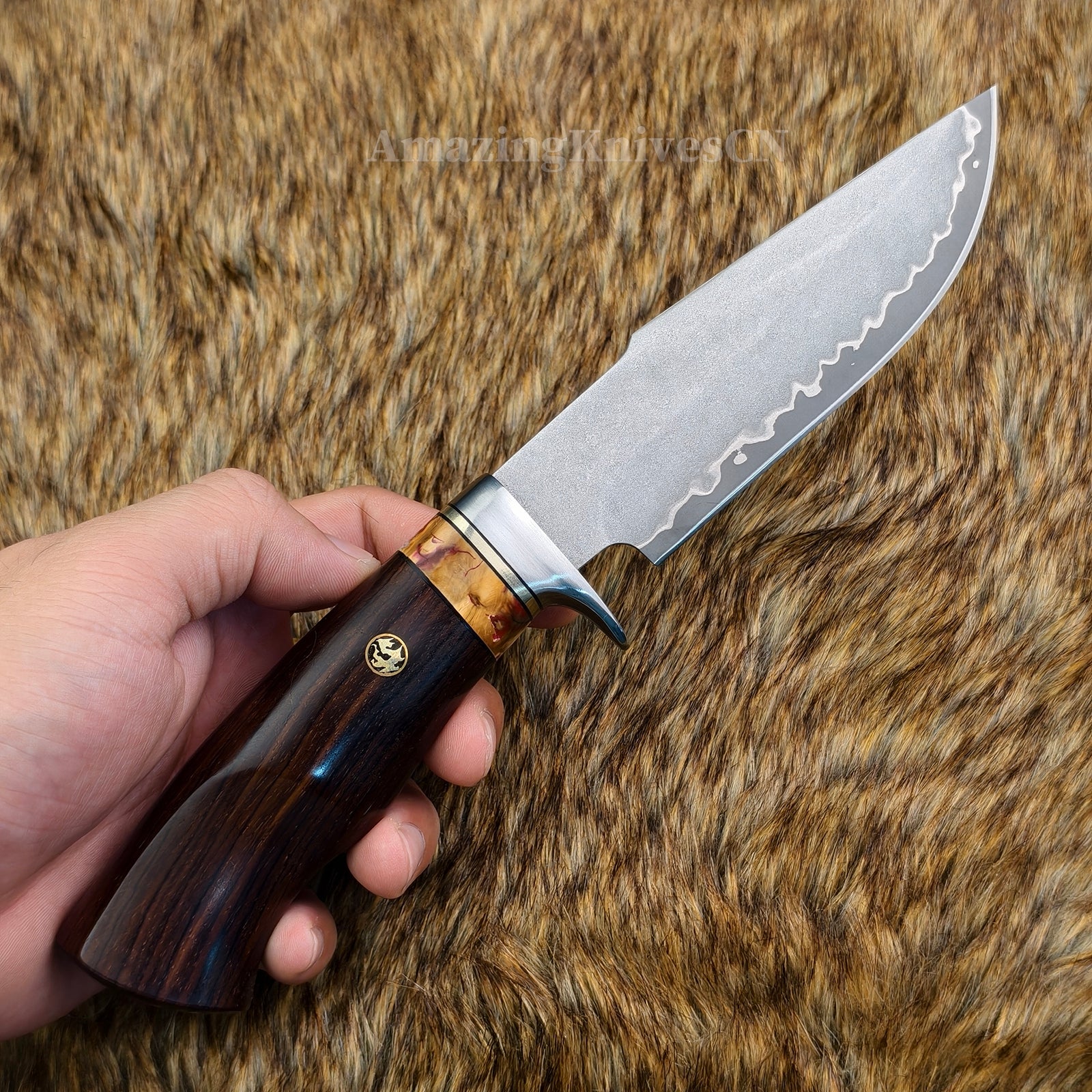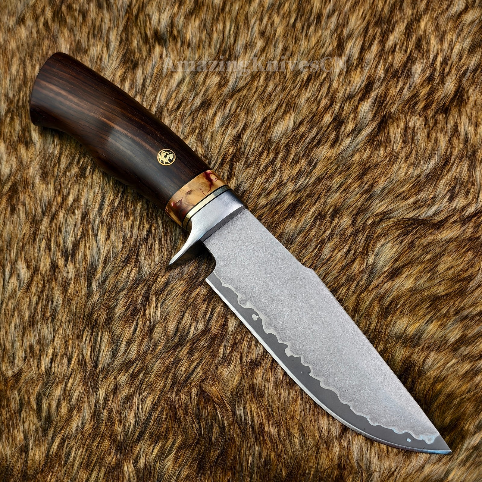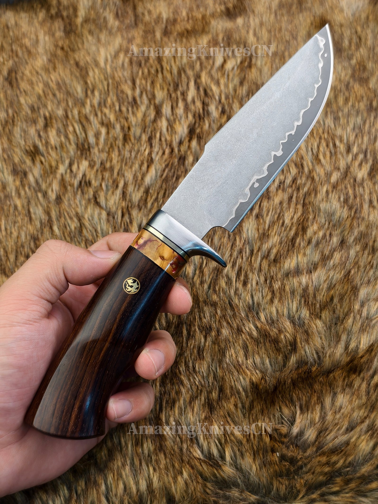 Rare Handforged Damascus Steel Ironwood Straight Hunting Outdoor Knife with Sheath- AK-HT0998