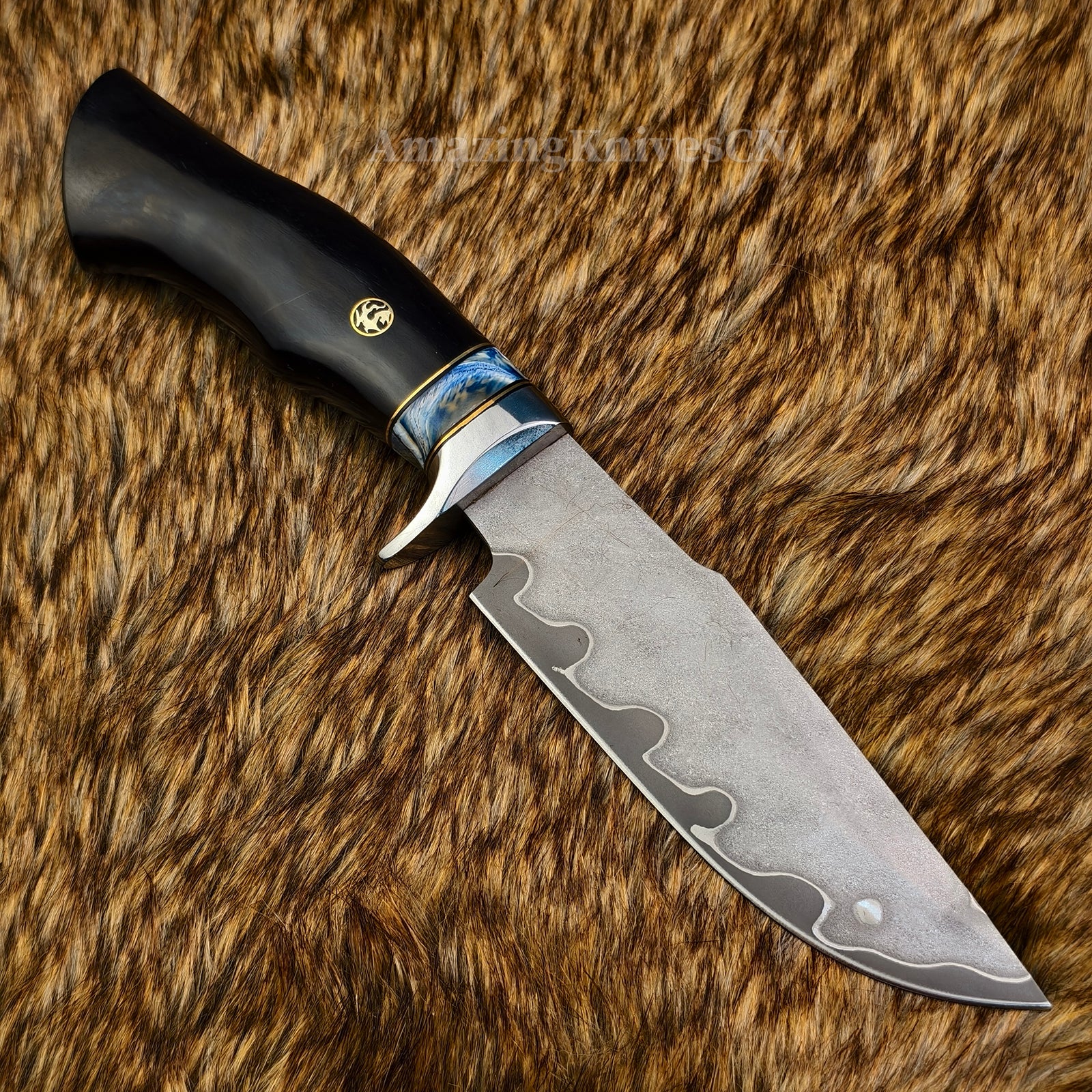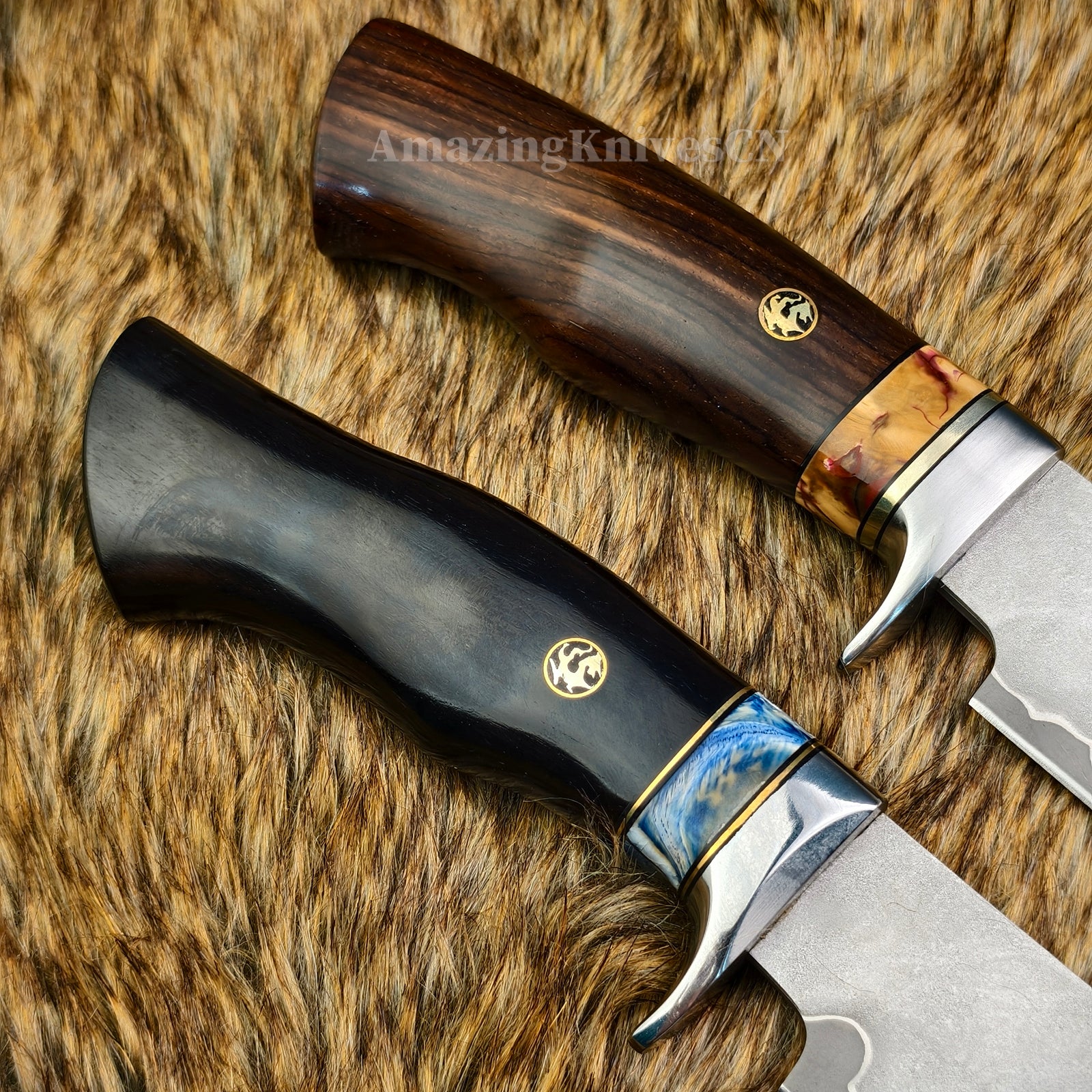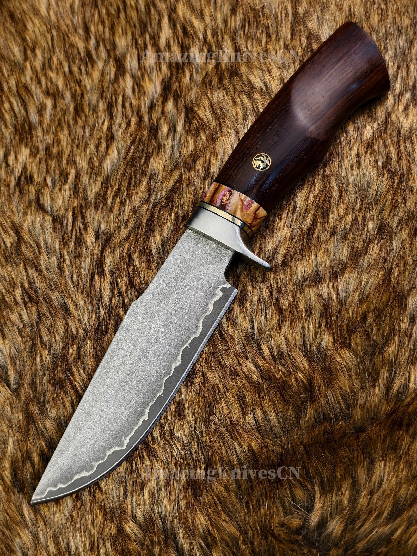 Rare Handforged Damascus Steel Ironwood Straight Hunting Outdoor Knife with Sheath- AK-HT0998