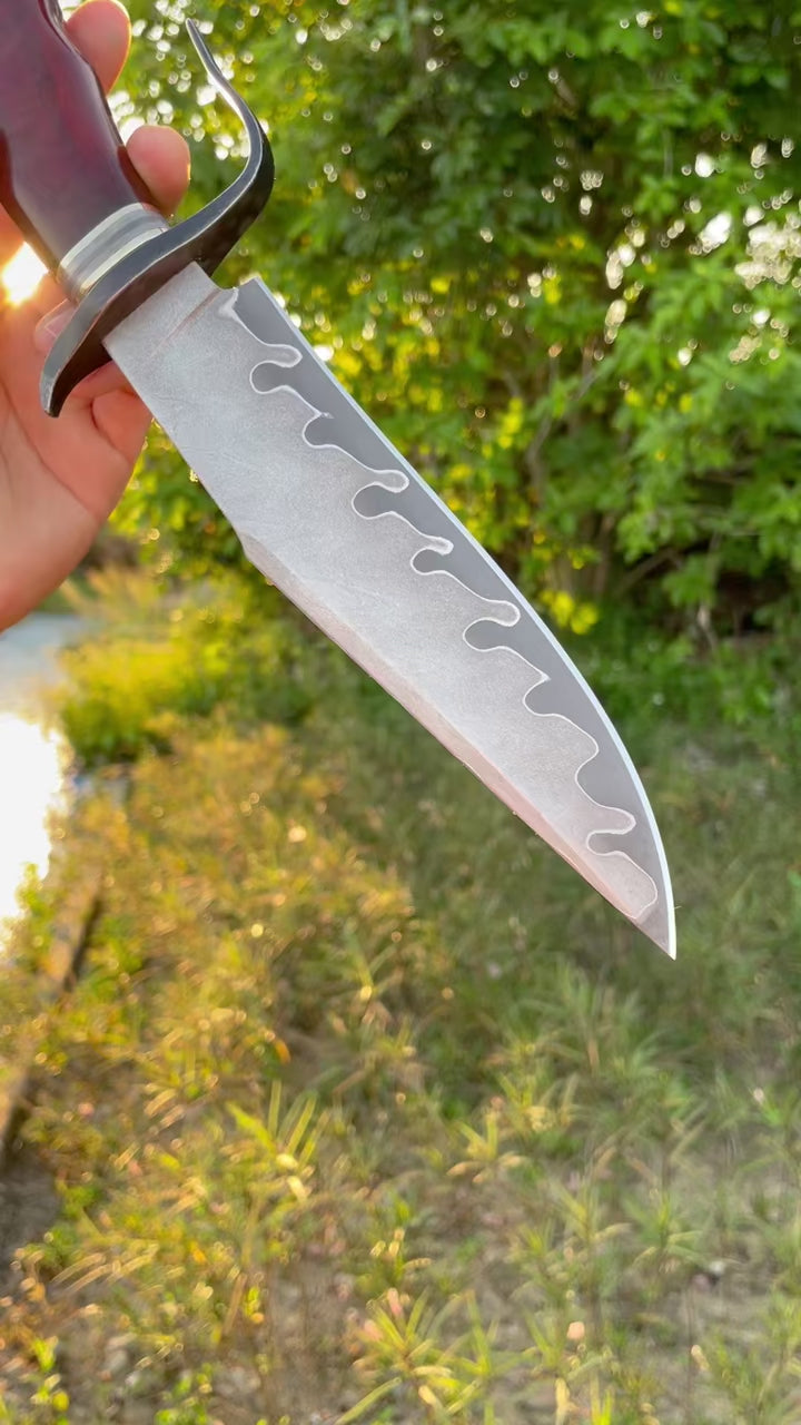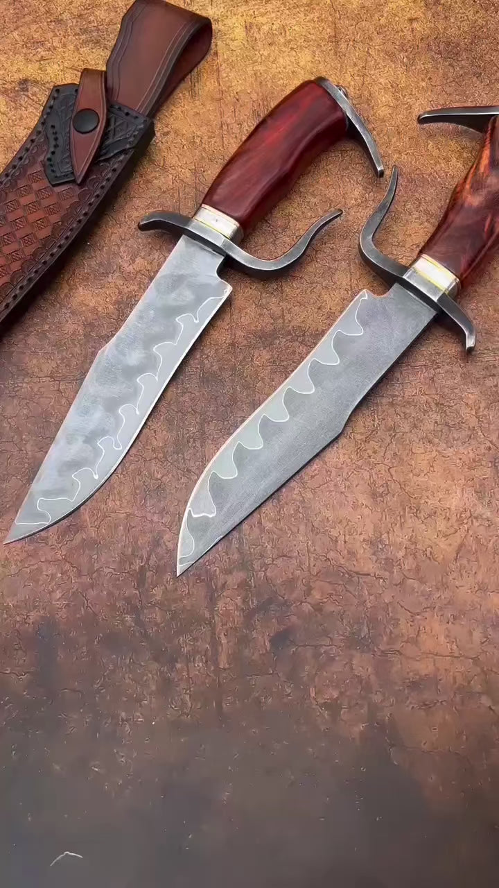 These knives and sheaths are handmaded. You will receive the knife that is like the one(s) in the photos, but the blade patterns and wood grains on handle may vary slightly.