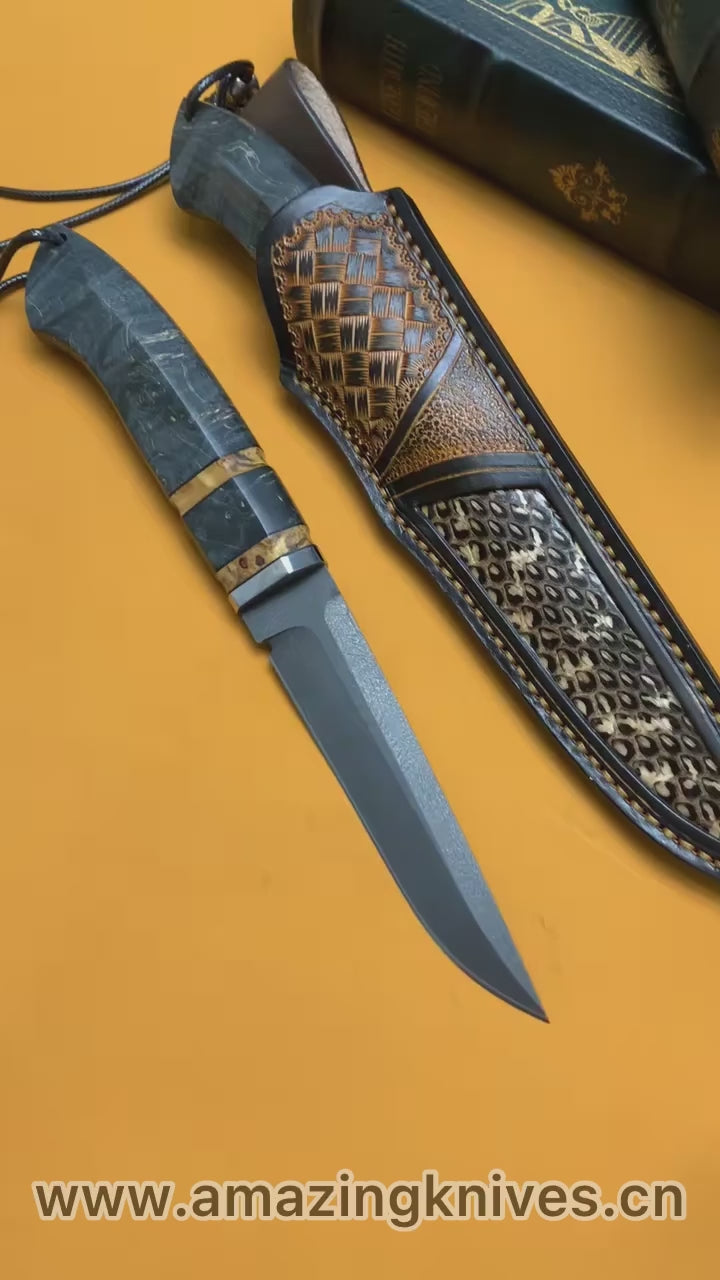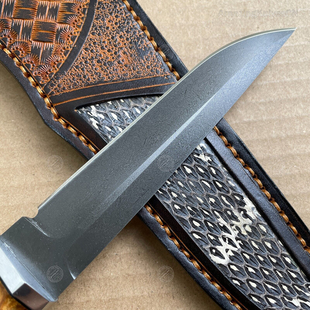 Sheath: Handmade Vintage Exquisite Snakeskin Inlay Tanned Leather Sheath  (Handmade sheaths, a slight difference is acceptable.)