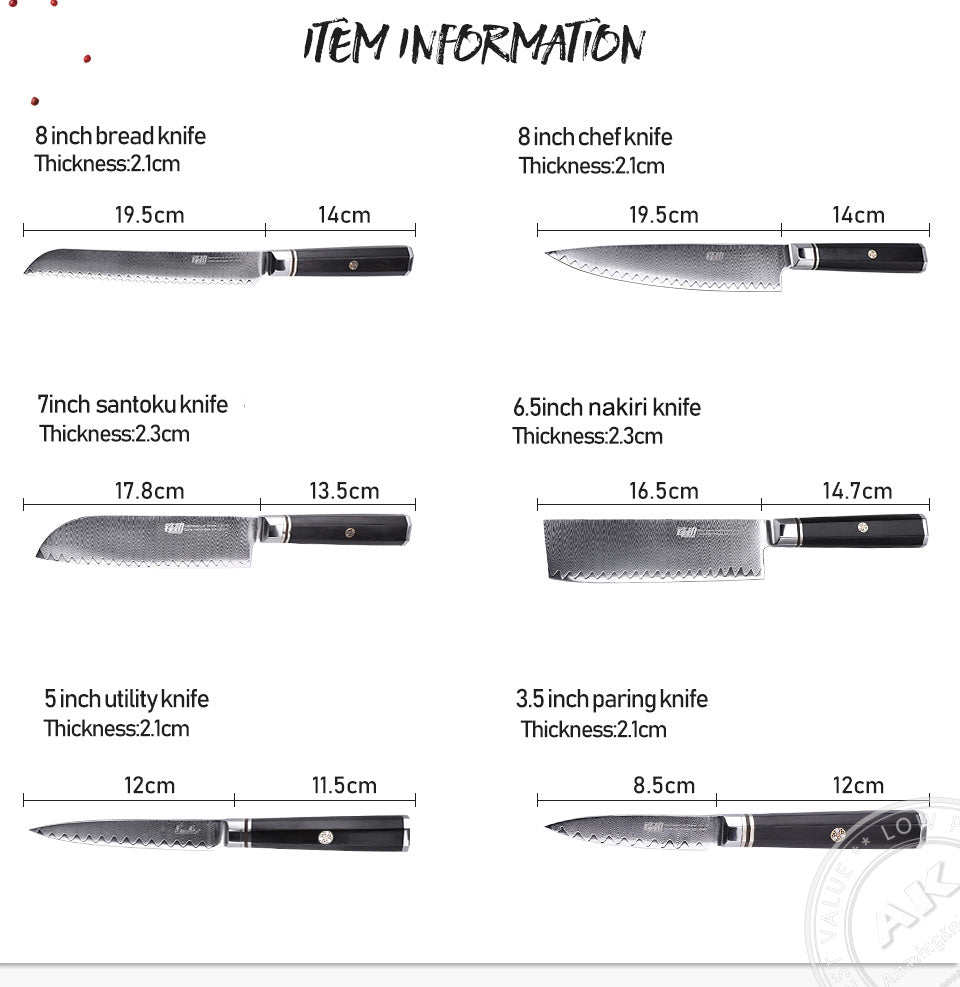 6 PCS Set 67-Layer Damascus Steel Kithcen Knife Set Amazing Quality -AK-DS0818