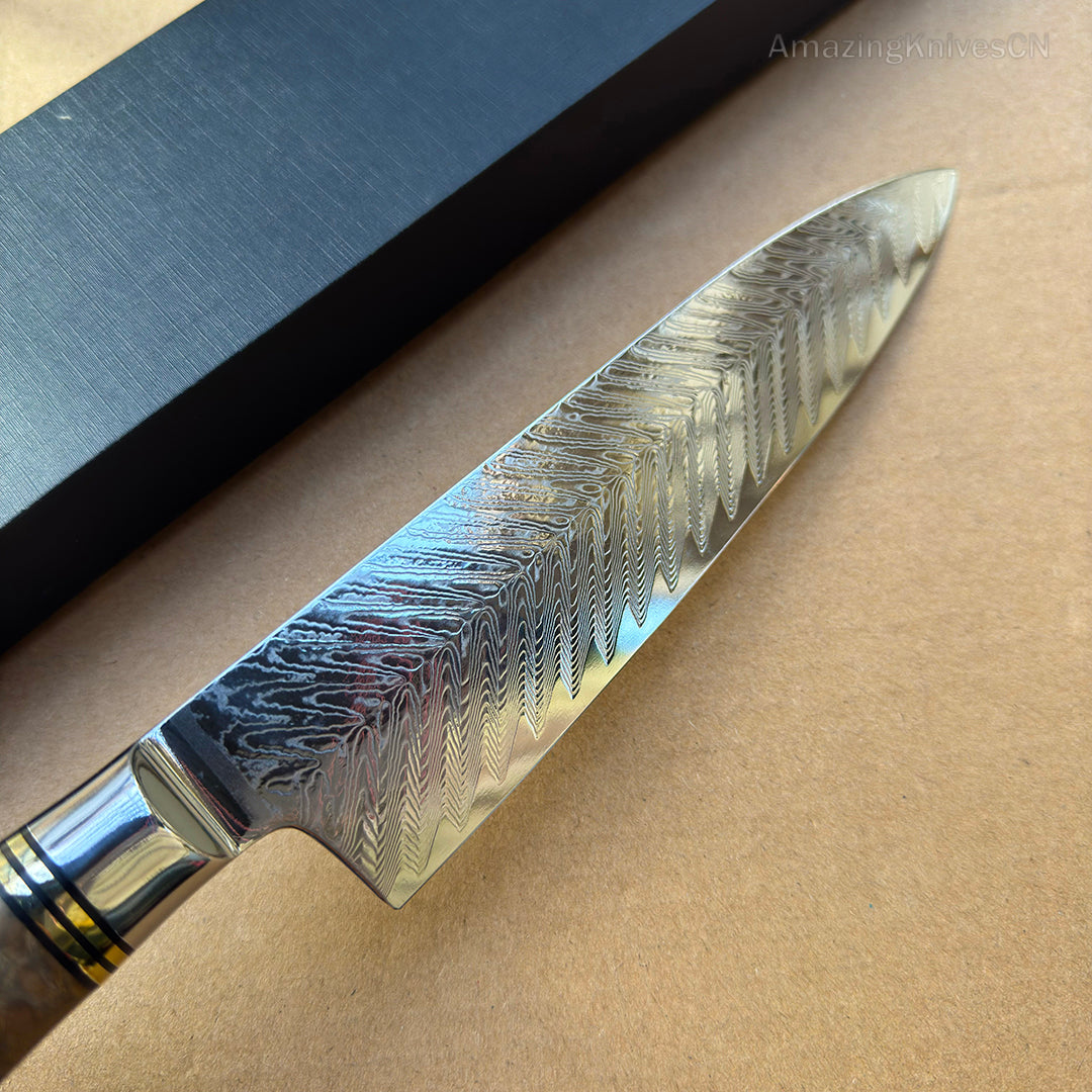• Blade material: 67-layer Japanese VG10 Polished Damascus Stainless Steel (the blade comes with or without logo,will be sent randomly)