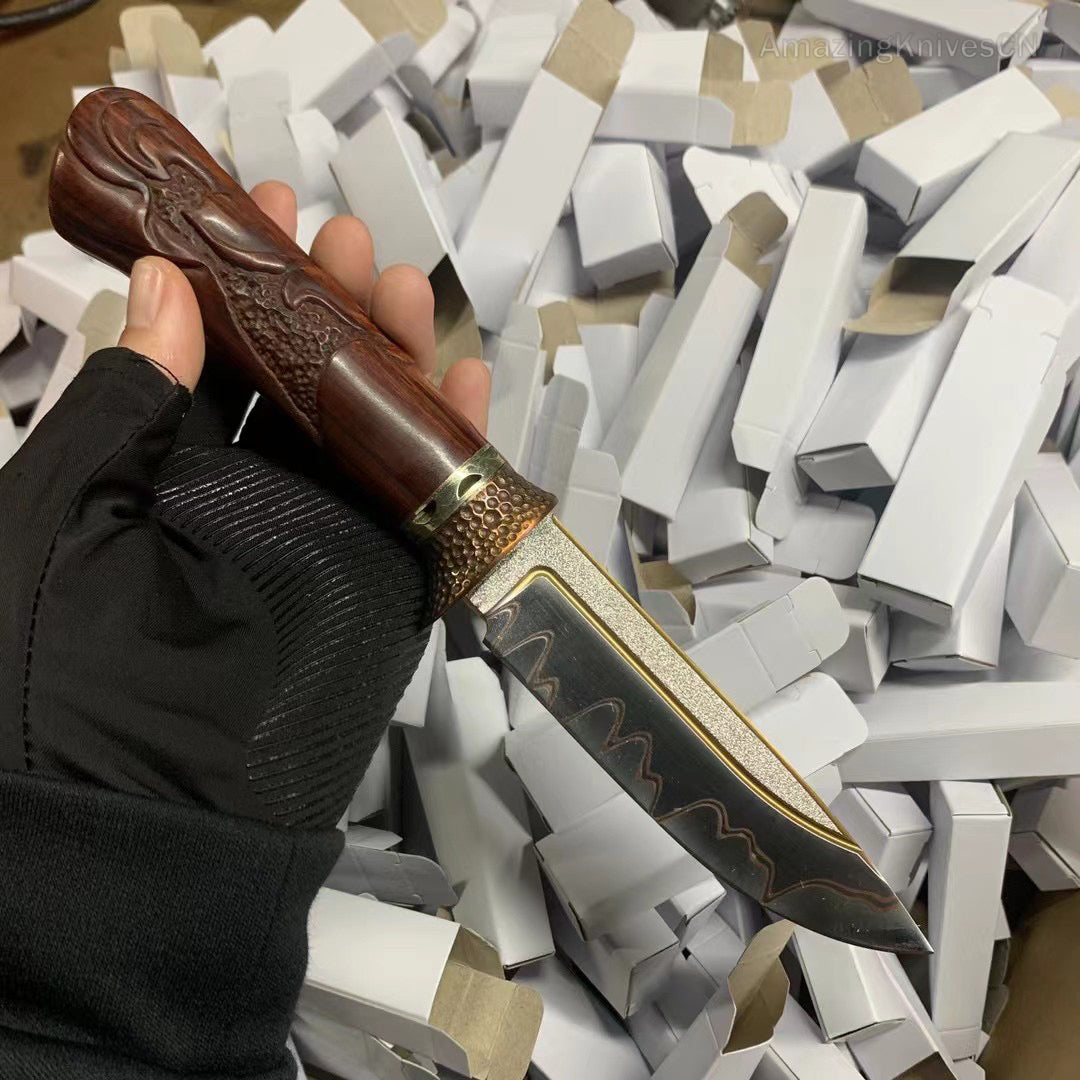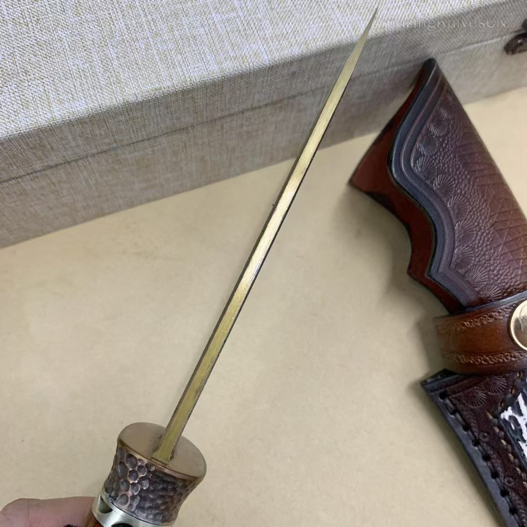 Collectible Handcrafted Copper Damascus Steel Knife Full Tang Desert Ironwood - AK-HT0910-2