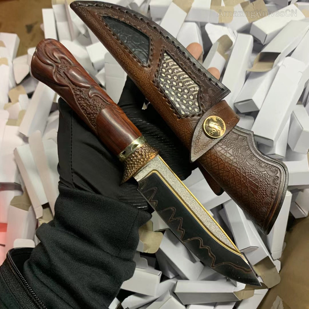 - Sheath: Vegetable-tanned leather snakeskin inlay hand-stitched sheath