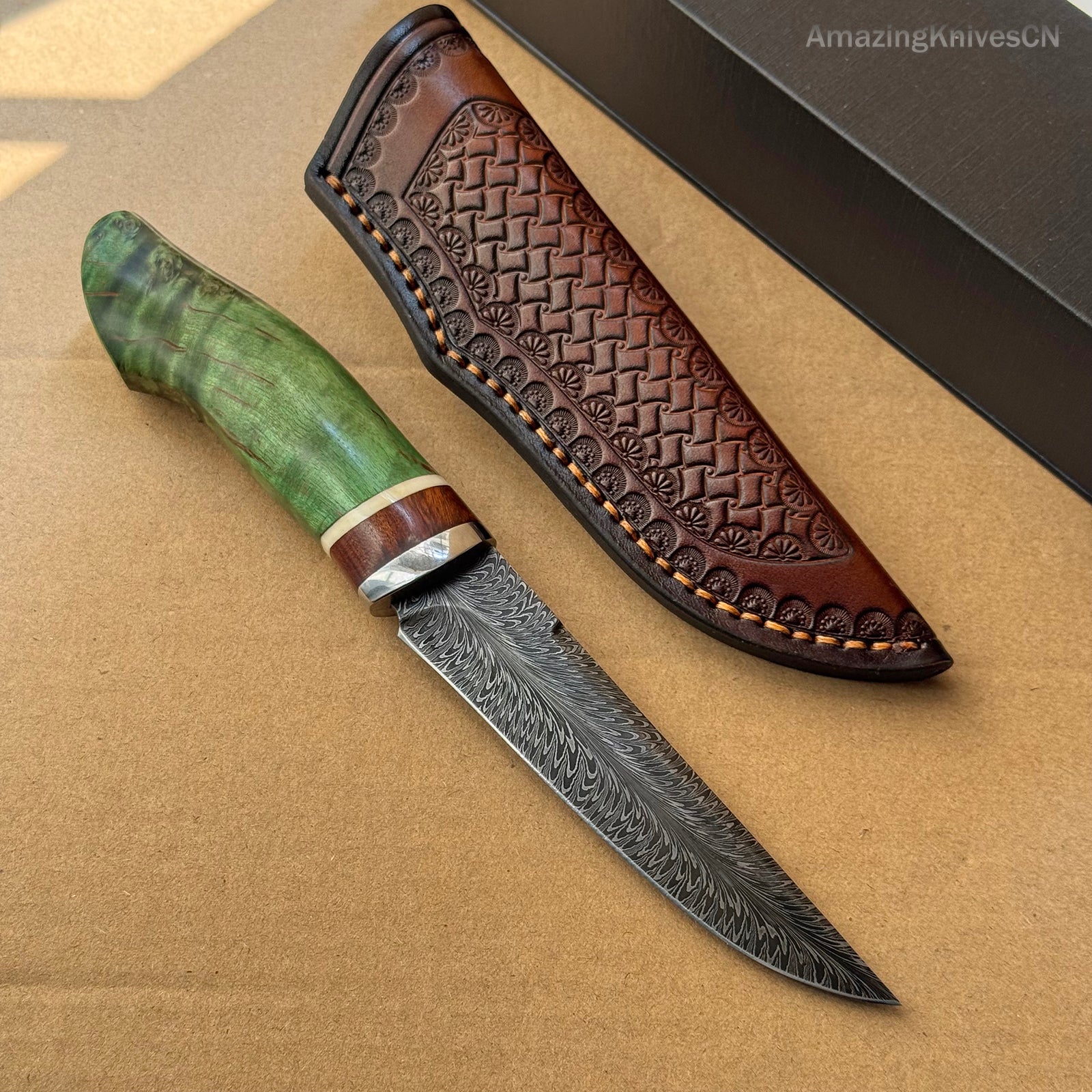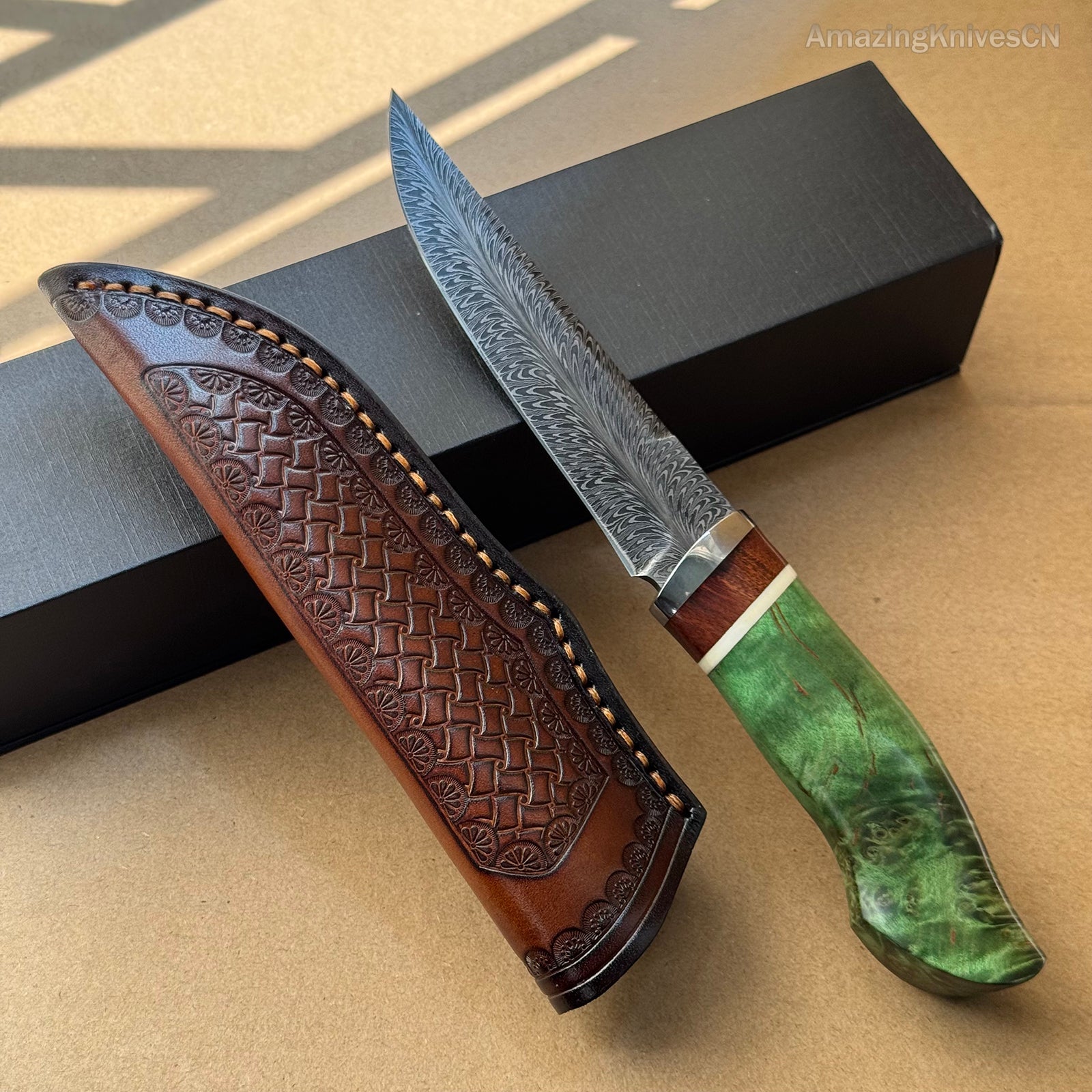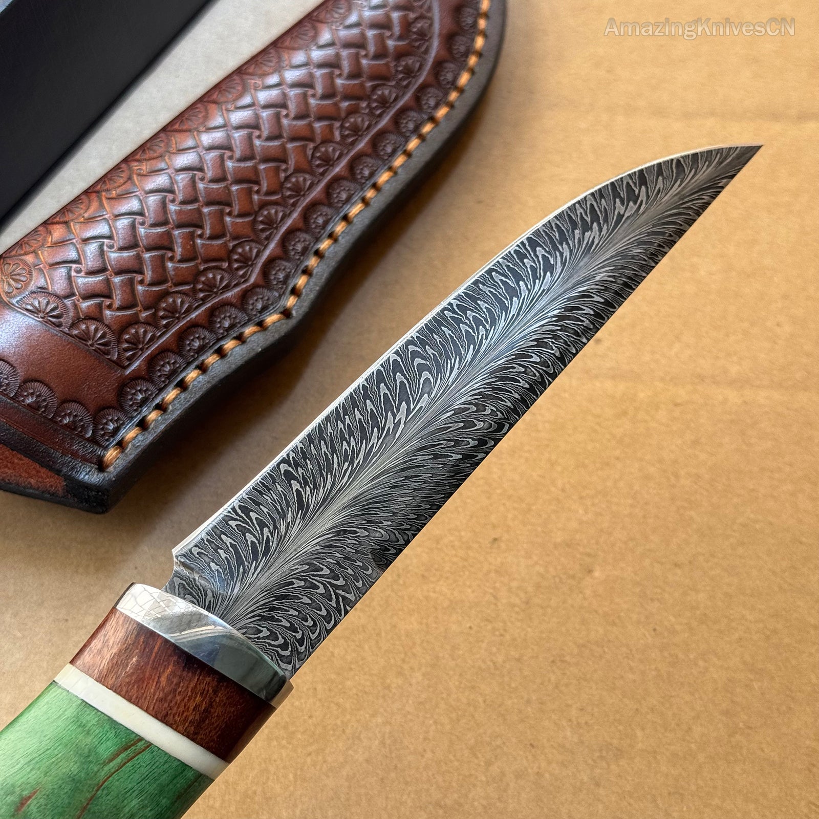 Collectible Handmade Feather Damascus Steel Knife Hunting Knife - AK-HT0974