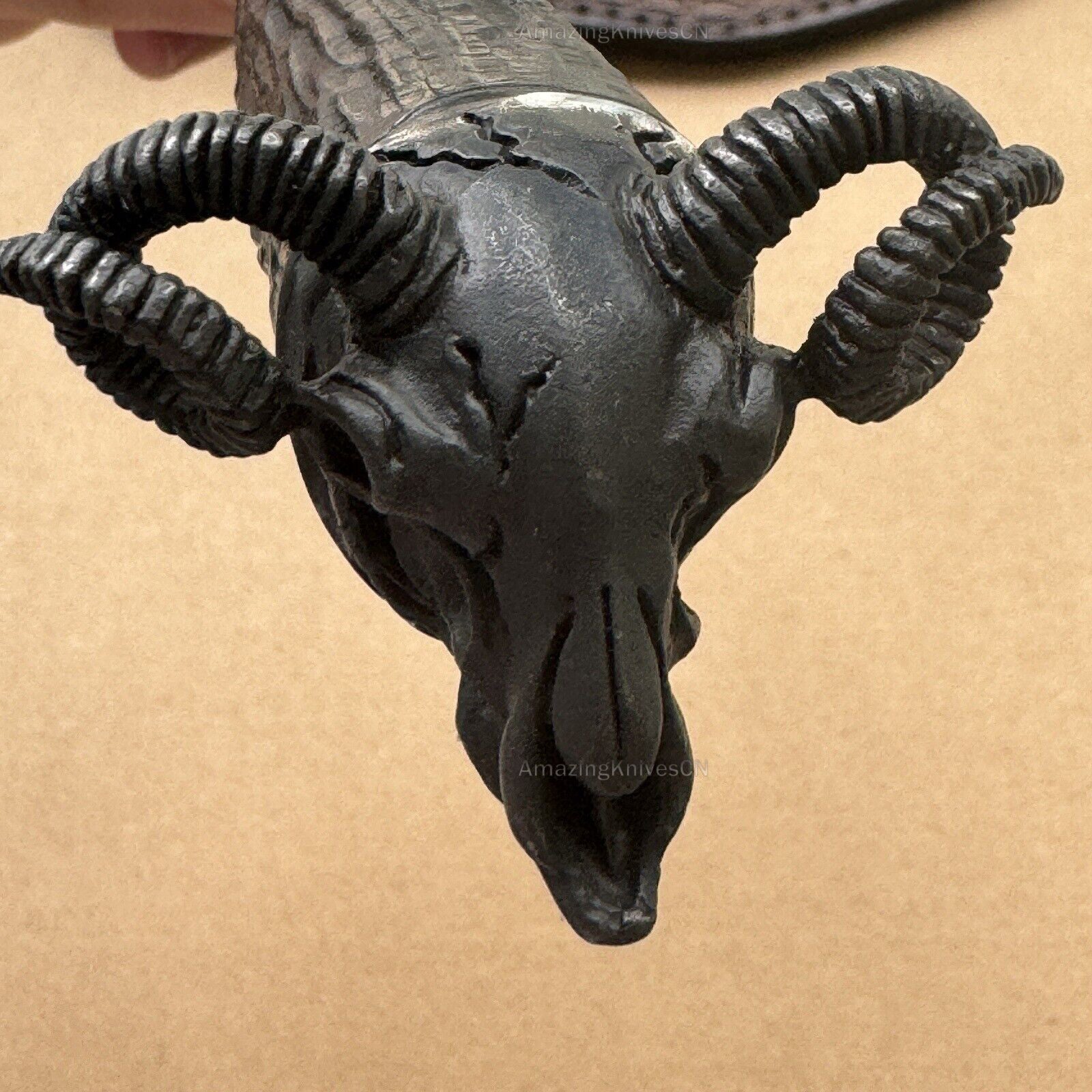 - Handle Material: Ebony +Hand-carved Steel Black Goat Head