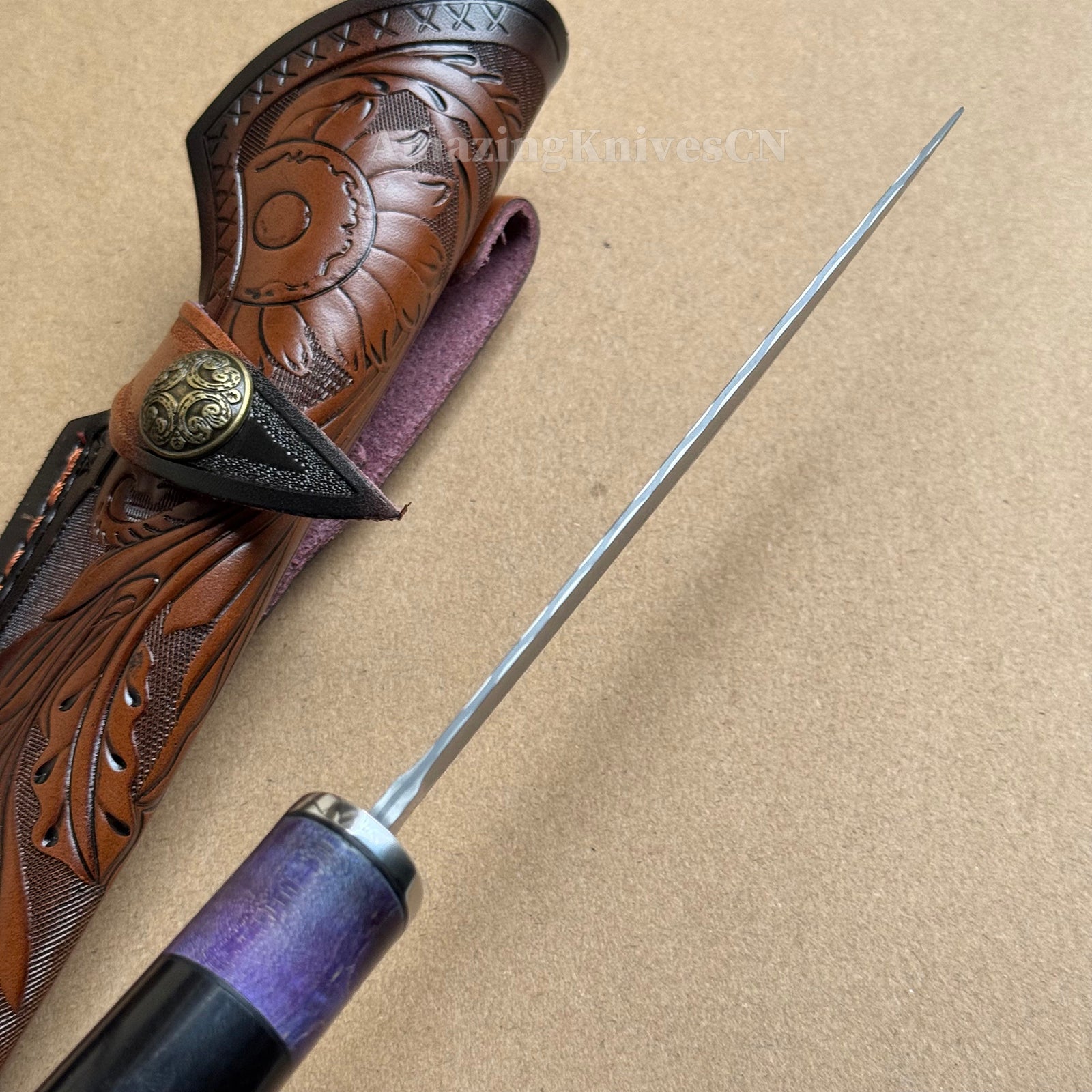 Damascus Steel Camping Hunting Knife Fixed Blade Ebony Wood Handle w/ Sheath - AK-HT0978