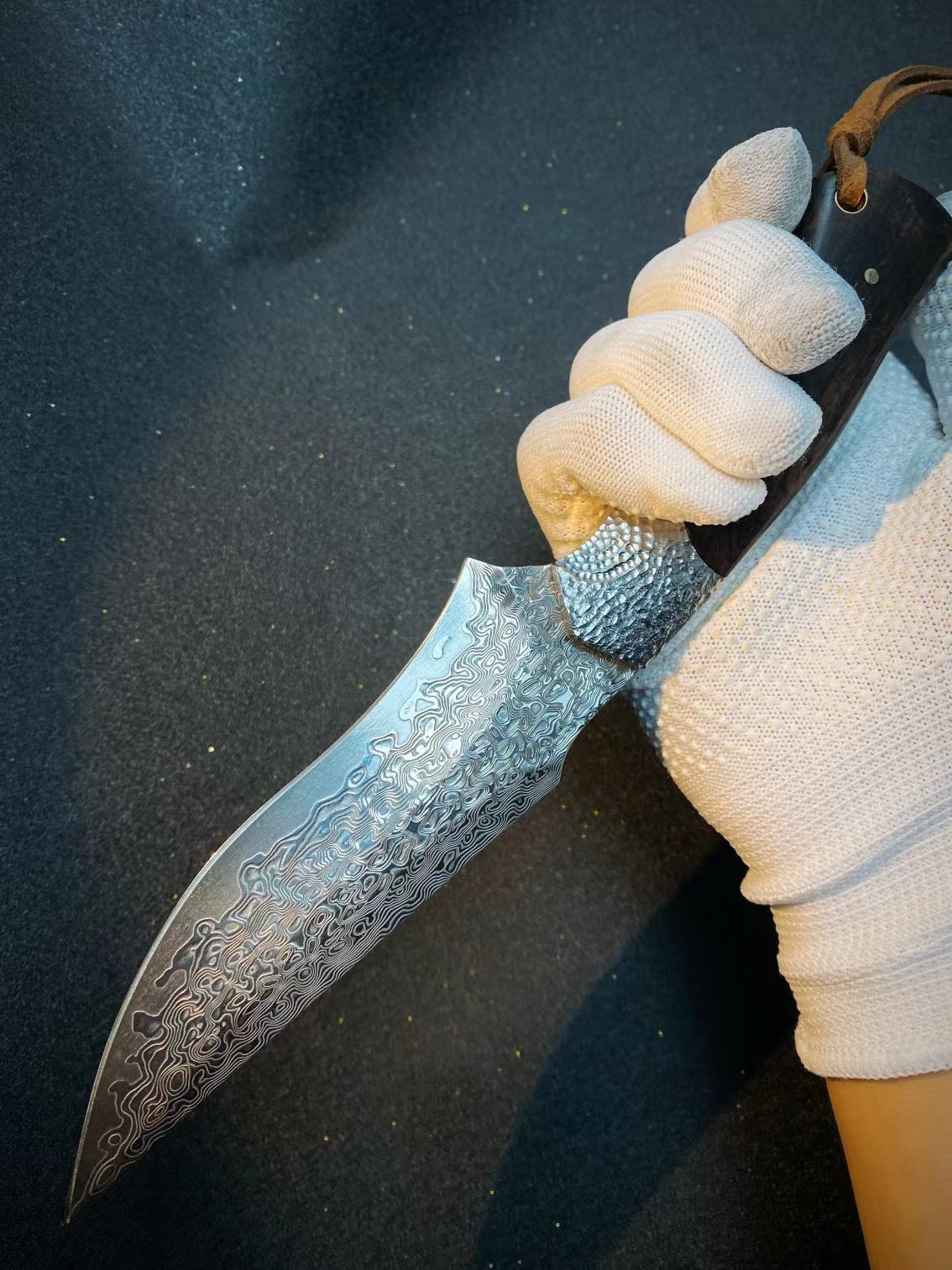 Damascus Steel Hunting Knife Survival Knife Bowie Fixed Blade Ebony with Sheath -AK-HT0727