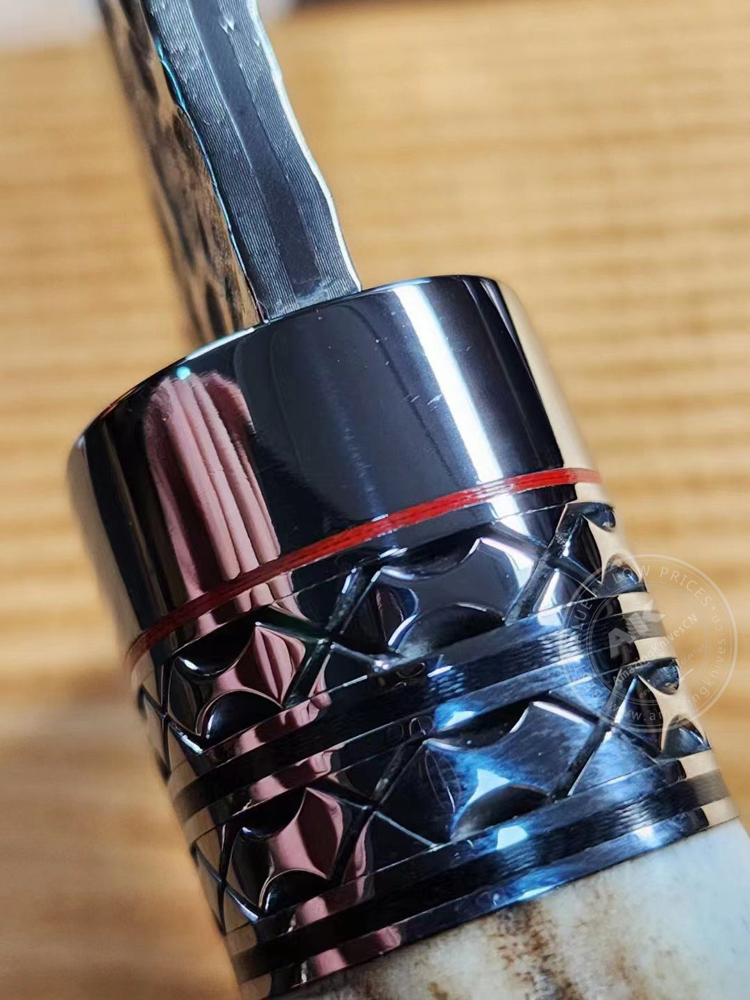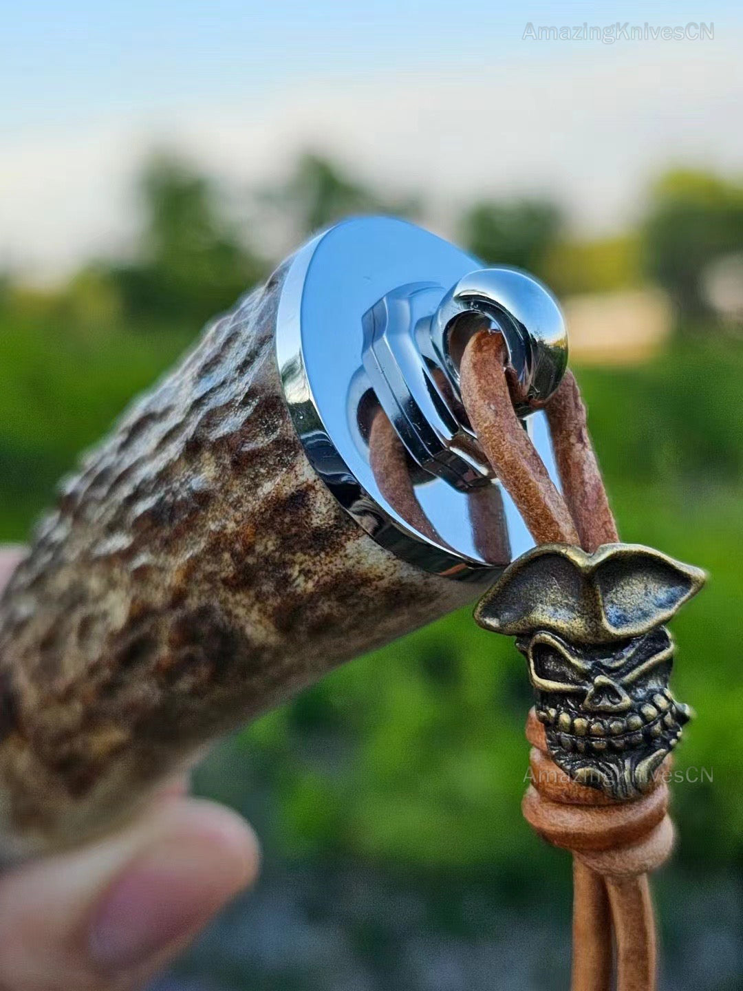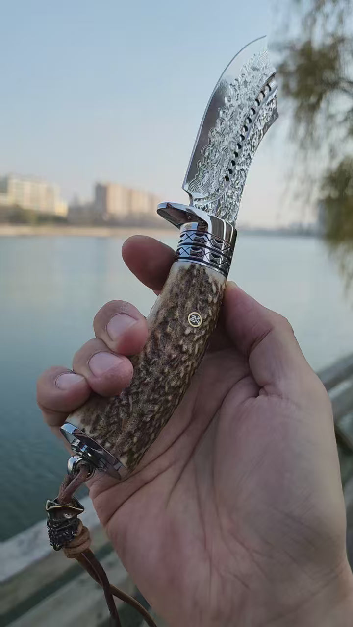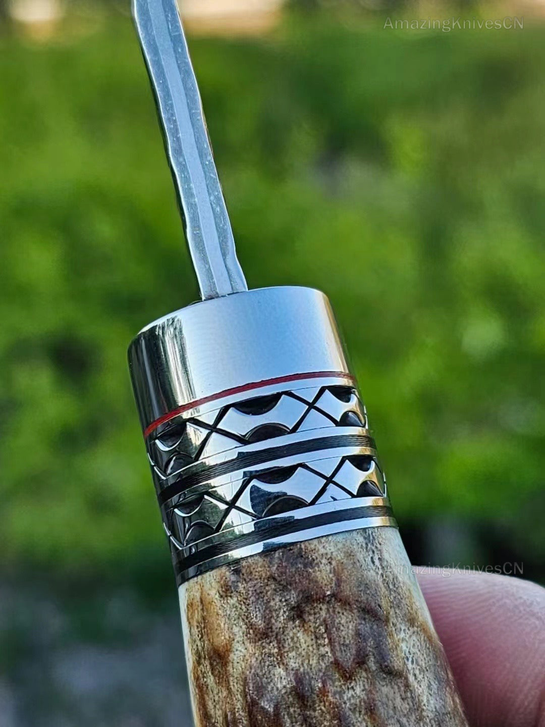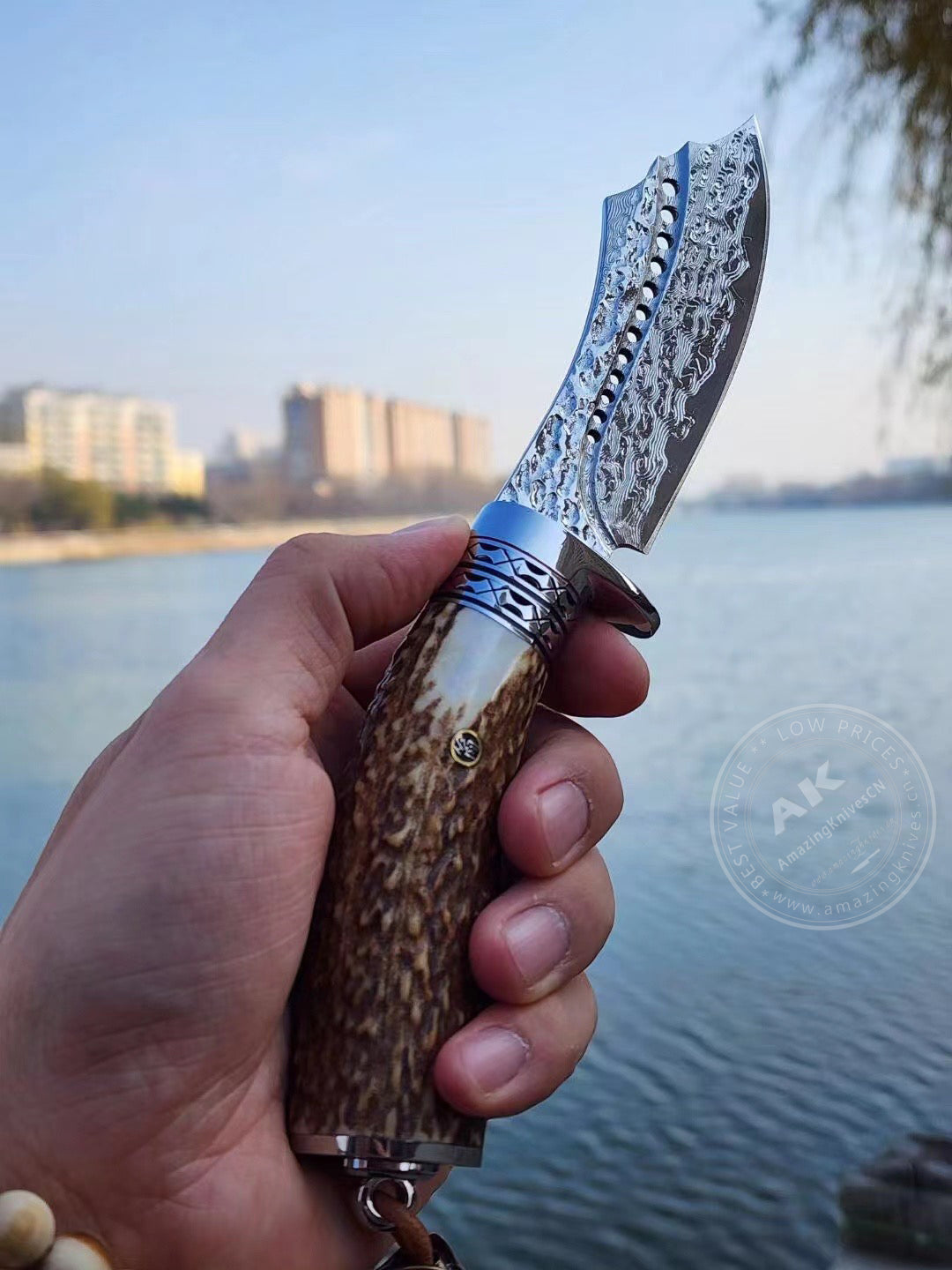 Damascus Survival Outdoor Camping Hunting Knife Fixed Blade Stag Antler Sheath - AK-HT0817