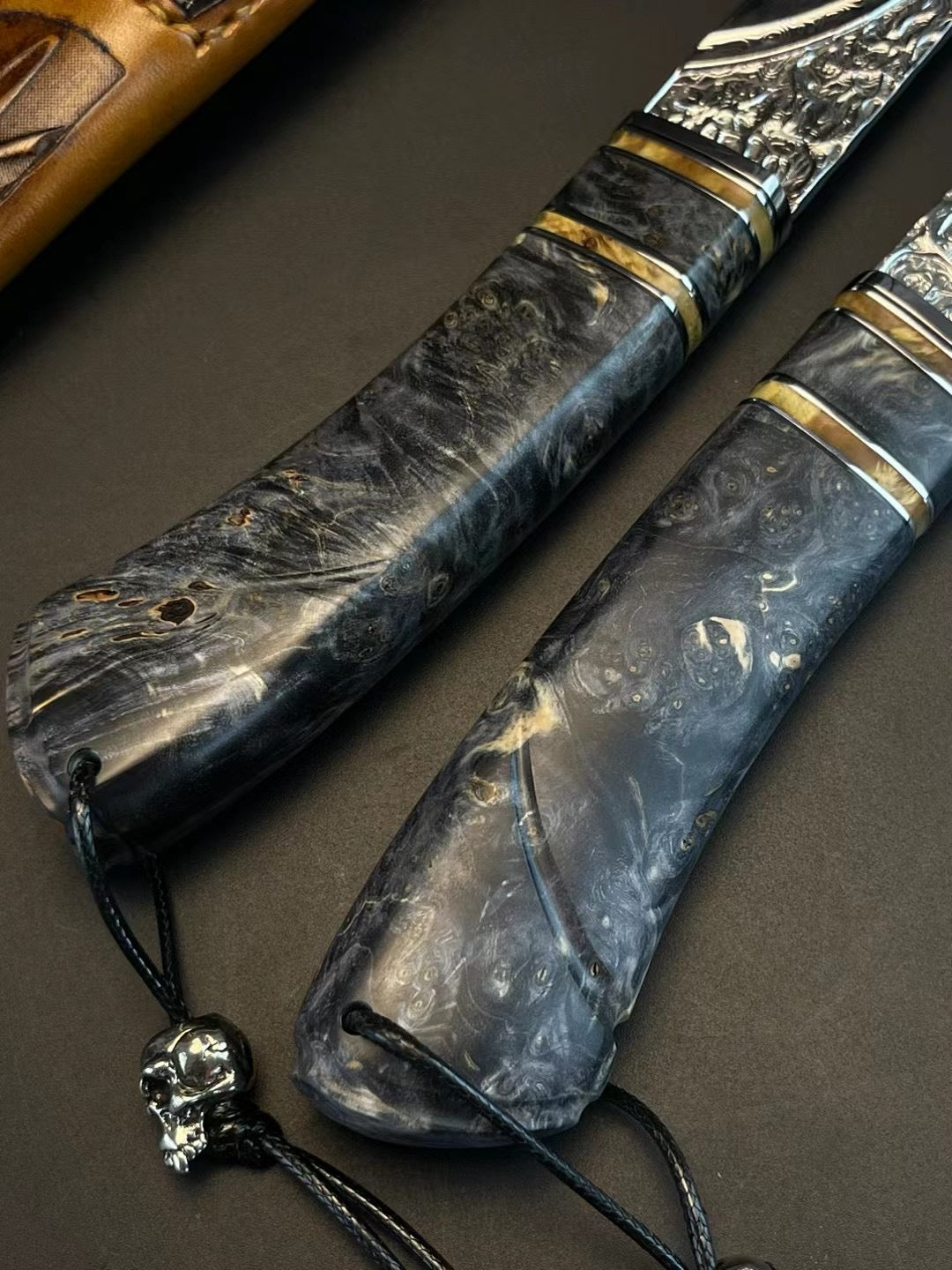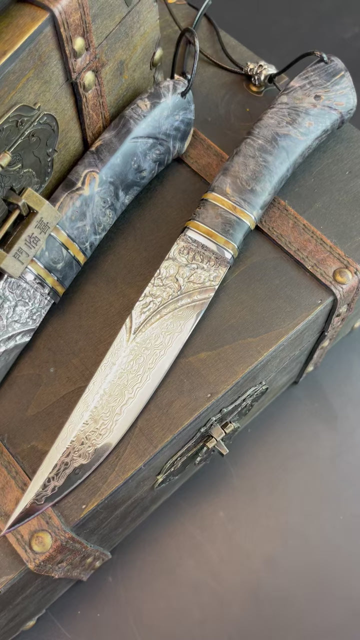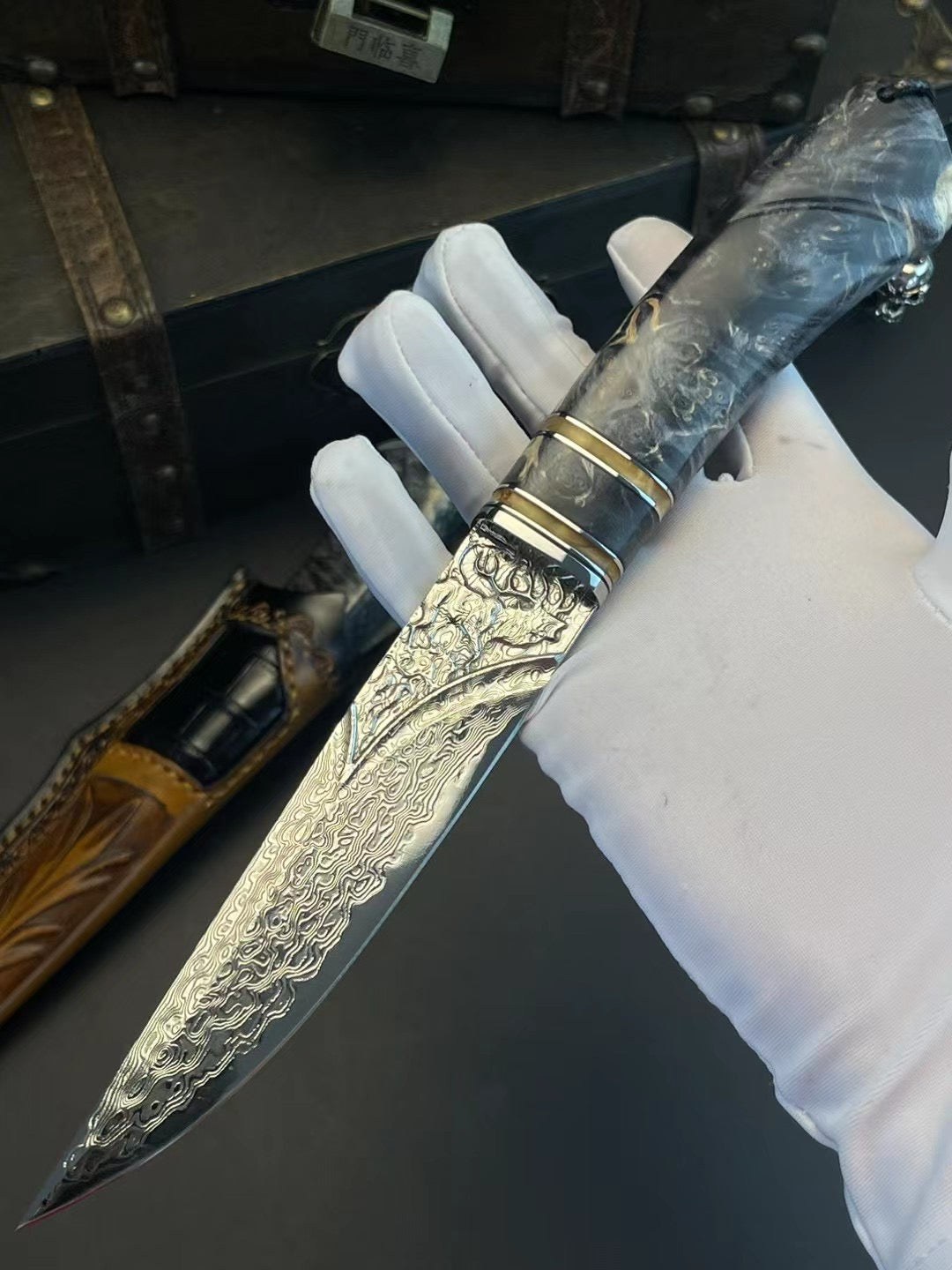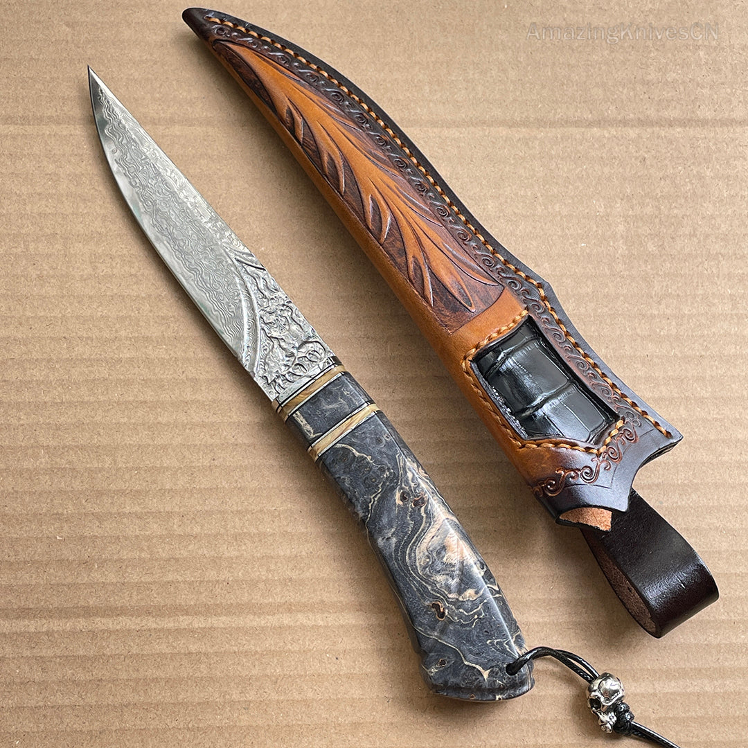 Fixed Blade Vg10 Steel Damascus Hunting Knife Handcrafted Steel Engraved Pattern - AK-HT0833