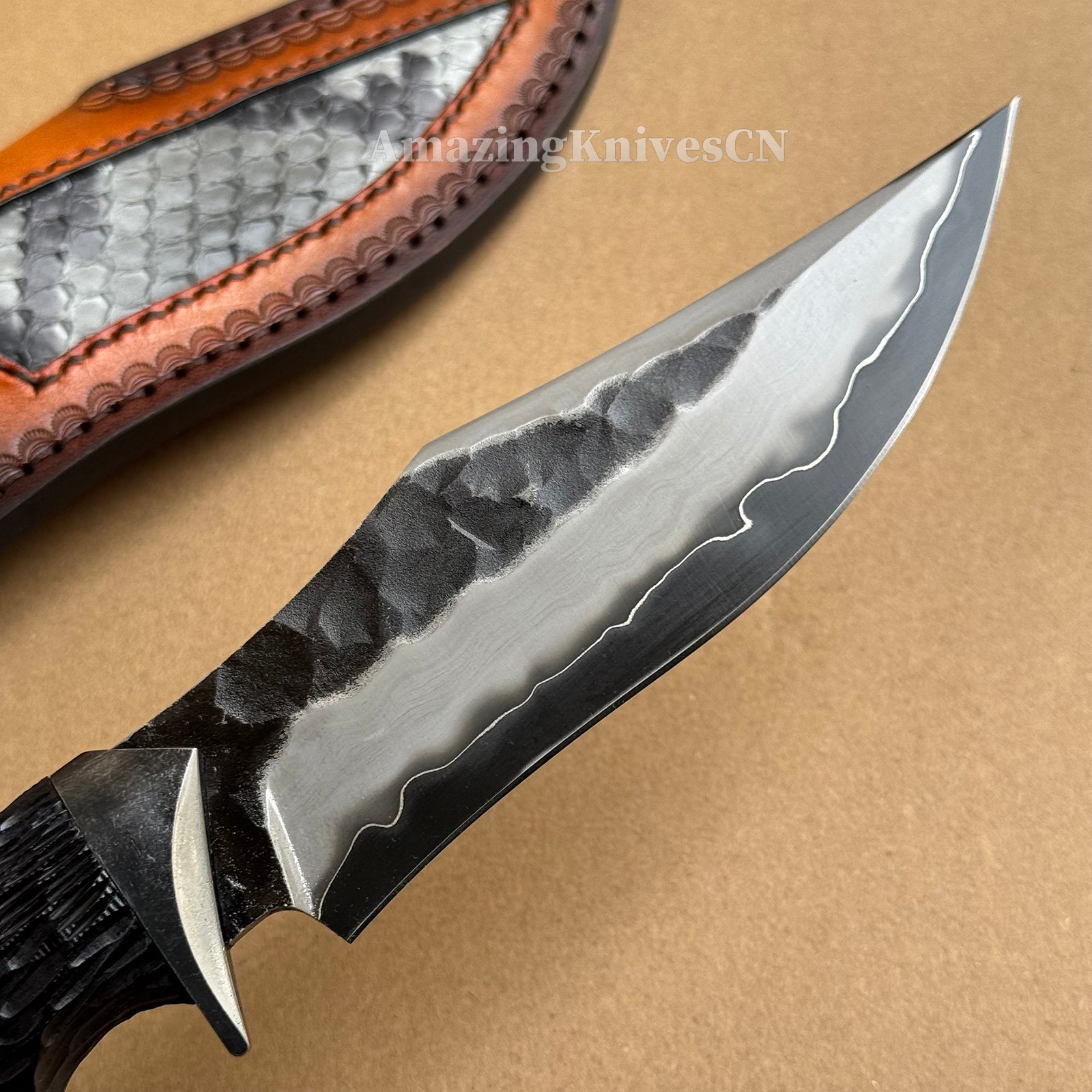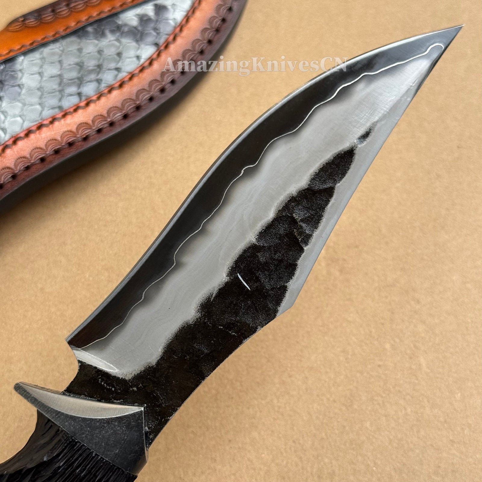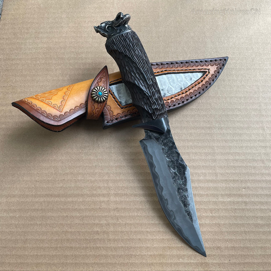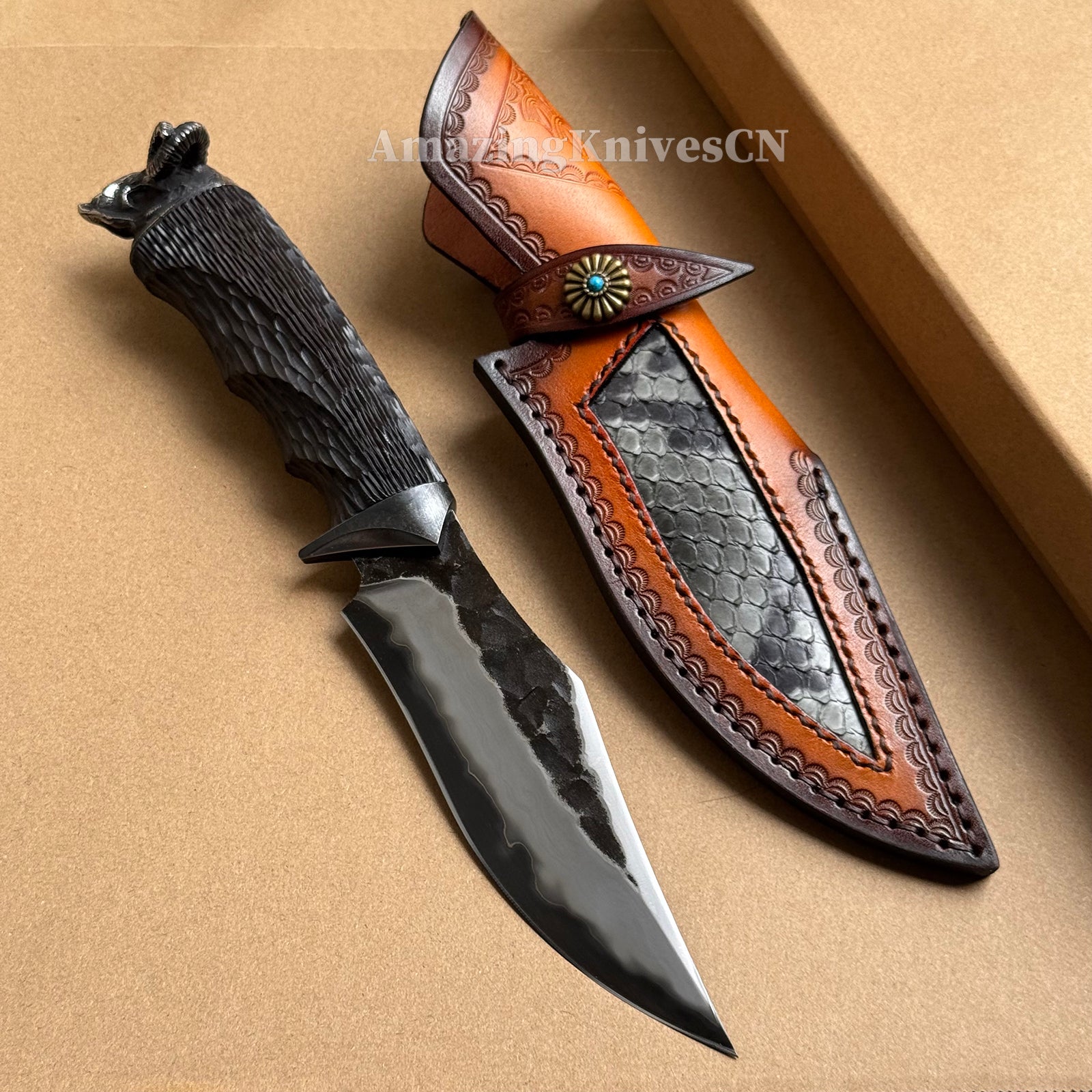 Forged Japanese San Mai Steel Hunting Knife Survival Knife Bowie Fixed Blade Black Goat Head - AK-HT0731