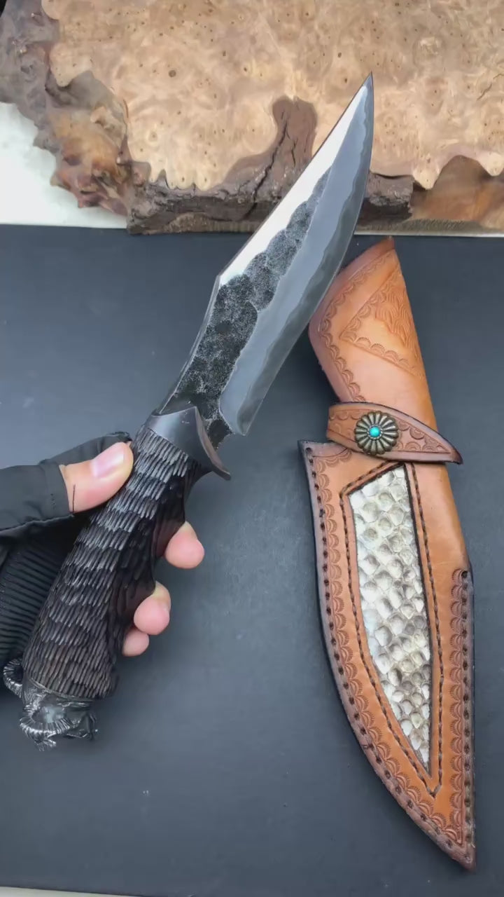 Handle Material: Ebony + Hand-carved Steel Black Goat Head