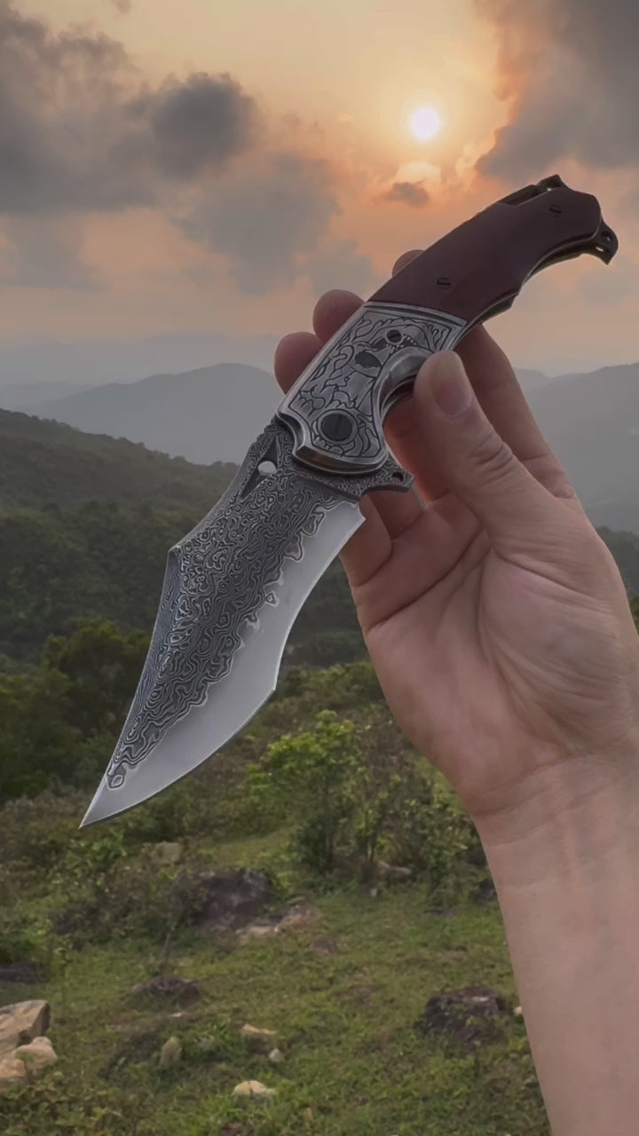 Giant Eagle Folding Knife – VG10 Damascus 67-Layer Steel, Handcrafted Rosewood Handle - AK-HT1033