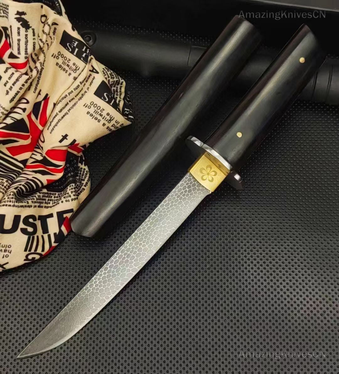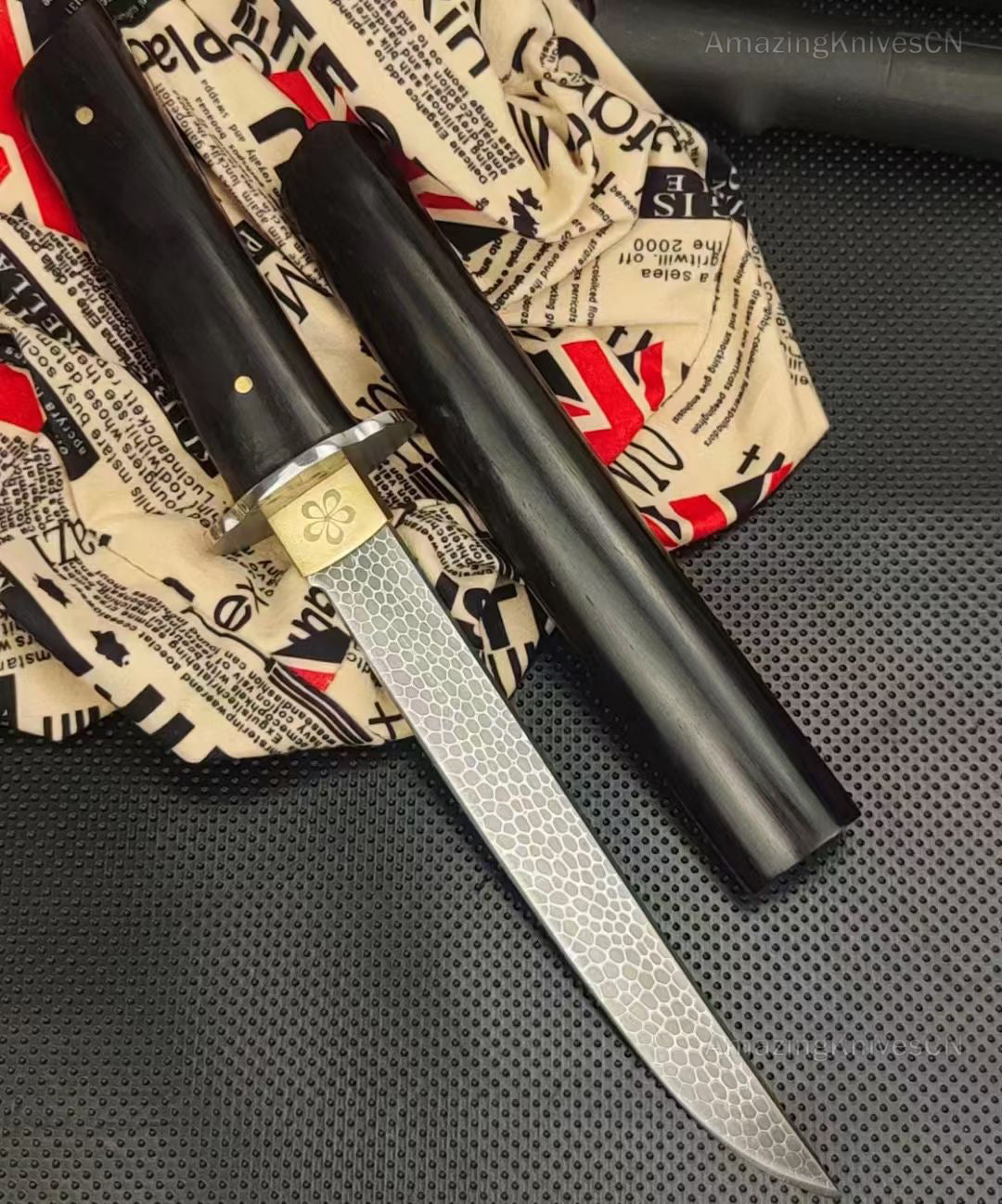- Blade Material: 9Cr18 steel, etched with a dragon-scale pattern, full tang