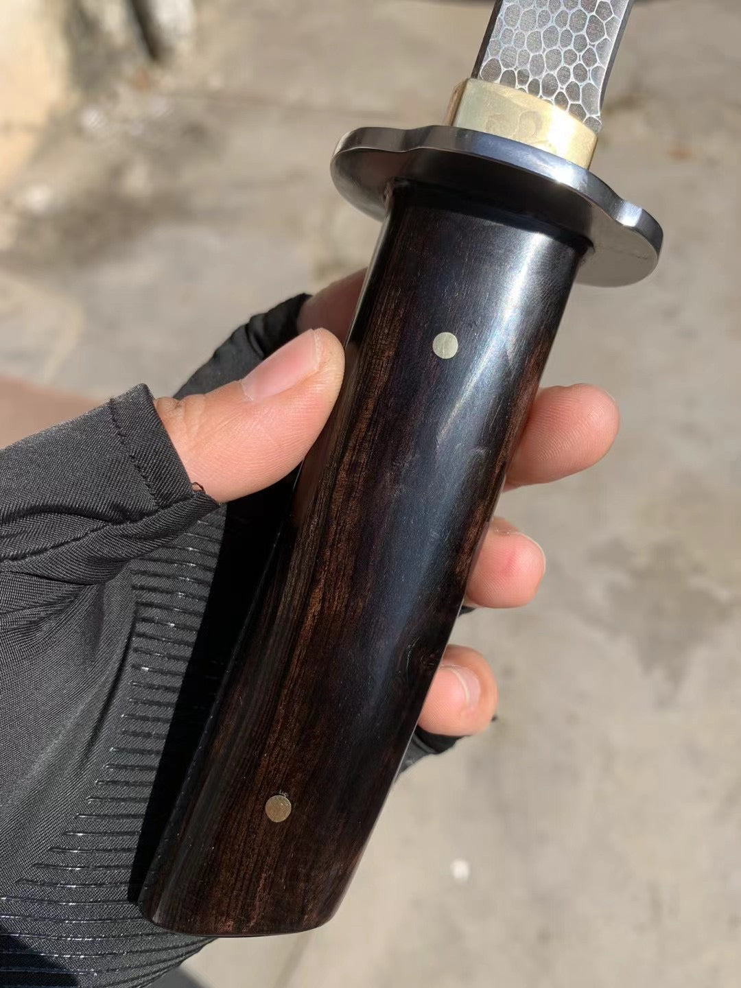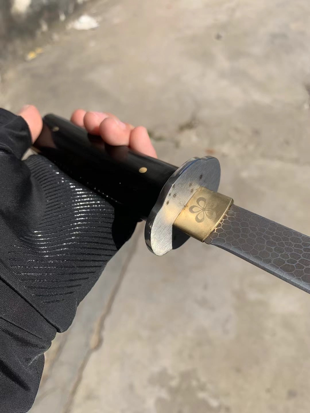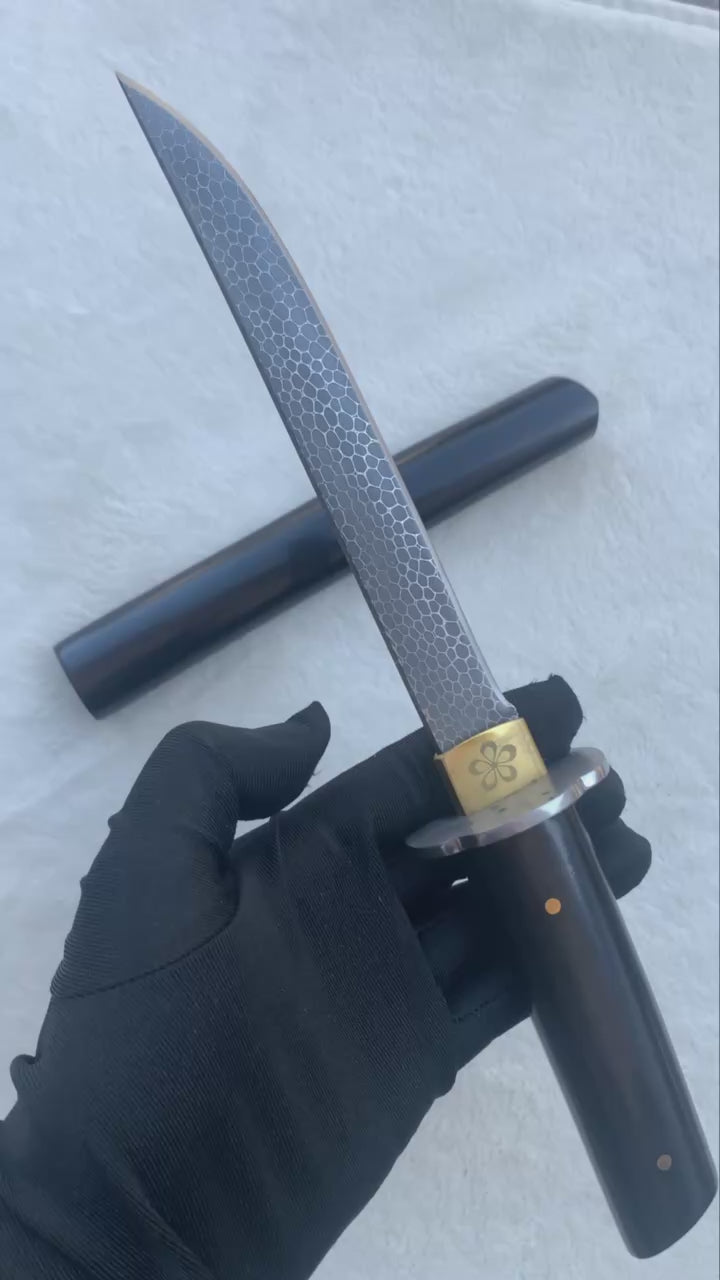 - Handle Material: Ebony wood with brass guard inlaid with cherry blossoms