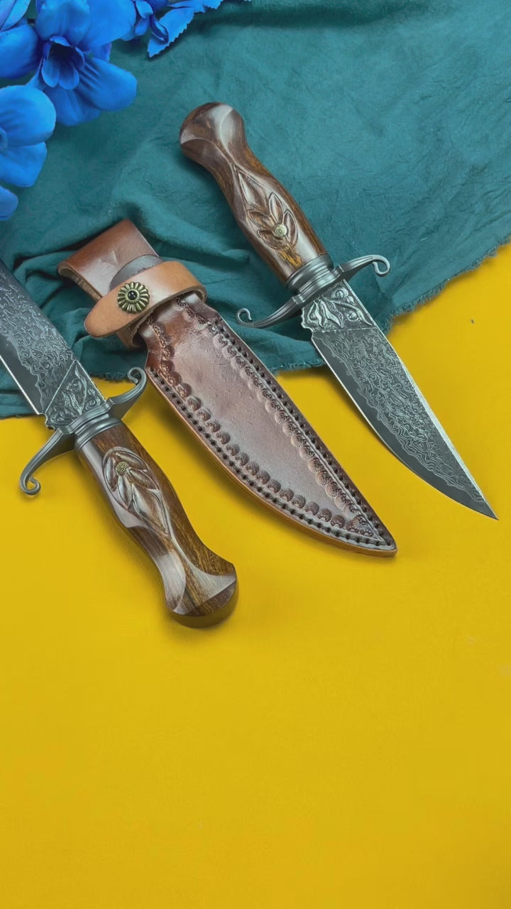 Handcrafted Japanese VG10 Damascus Knife Fixed Blade Bowie Engraved Steel Ironwood - AK-HT0811