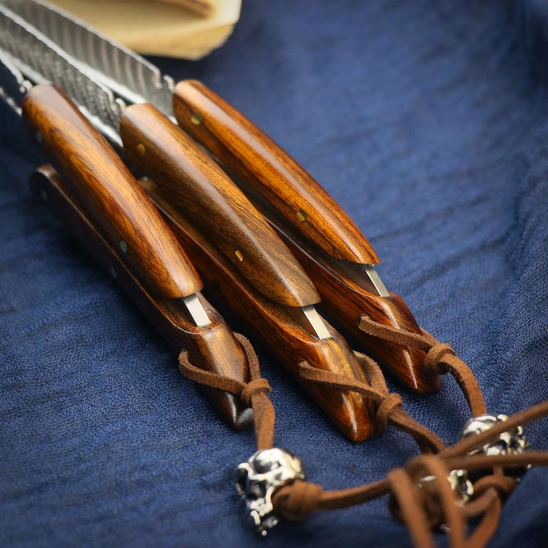 HANDCRAFTED KNIVES FIXED BLADE DAMASCUS FULL TANG BLADE FEATHER KNIFE - AK-HT0510