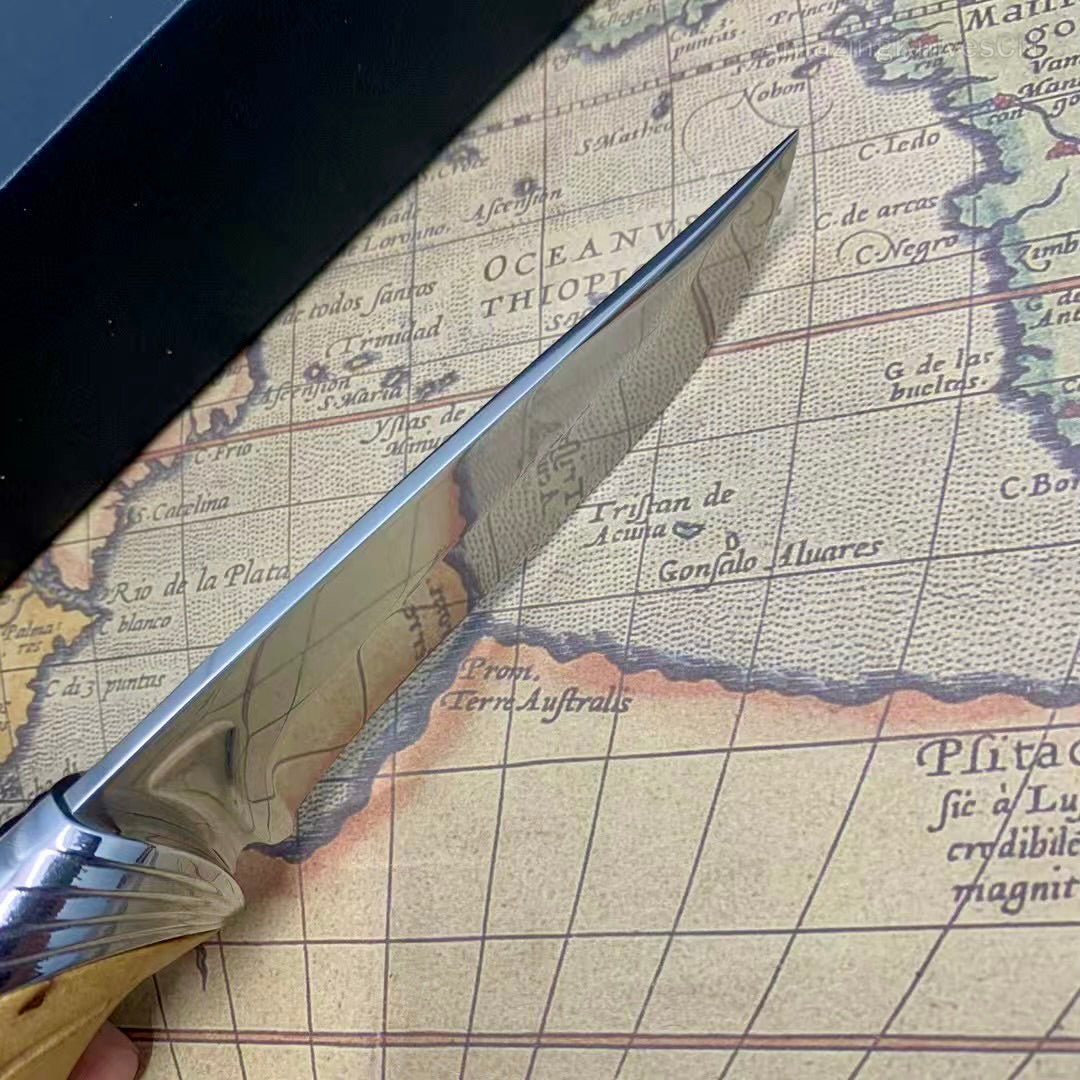 Blade Material: Wootz Steel, Semi-Mirror Polish (silver) / Acid Etching (gray)