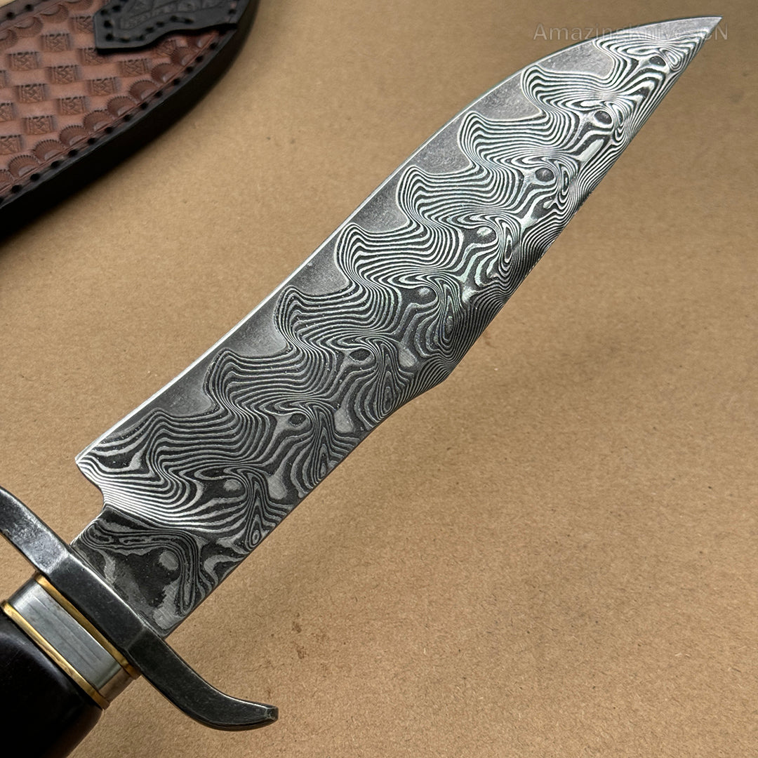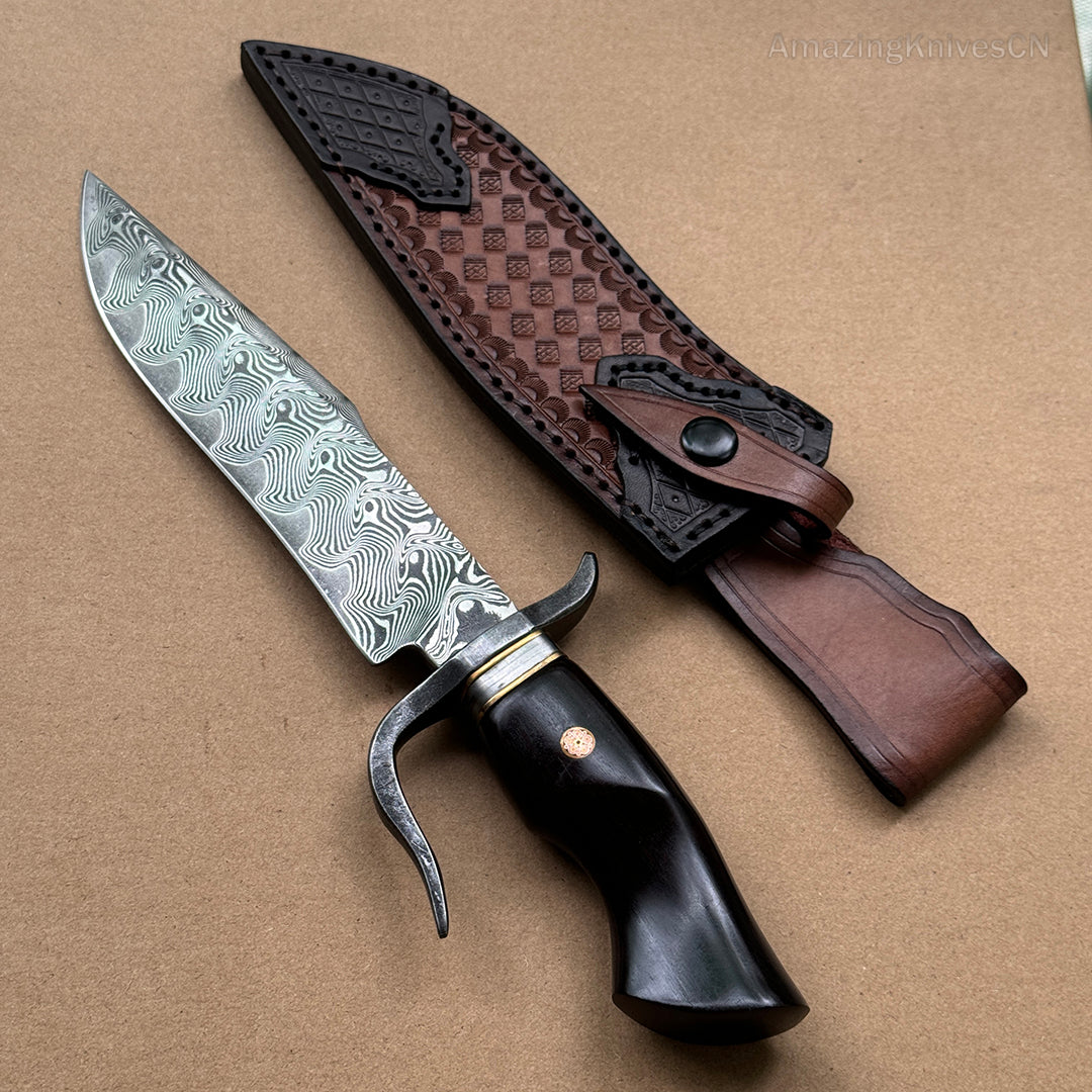 These knives and sheaths are handmaded. You will receive the knife that is like the one(s) in the photos, but the blade patterns and wood grains on handle may vary slightly.