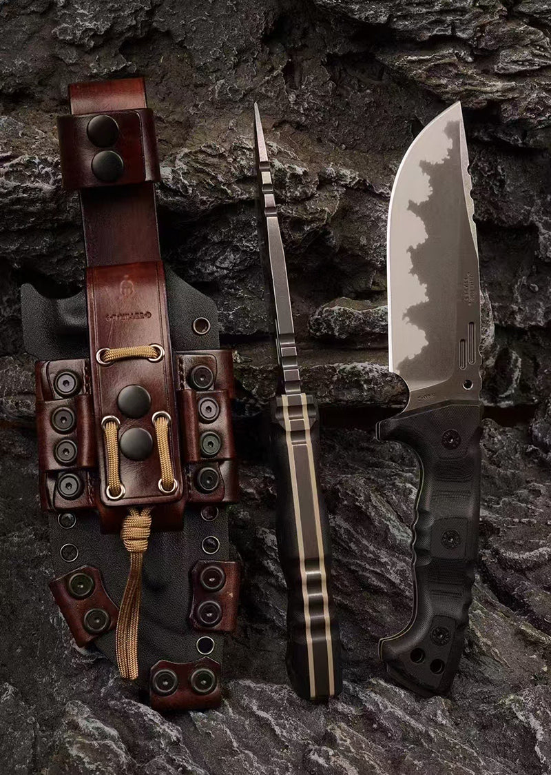- Handcrafted Italian vegetable-tanned leather outer sheath