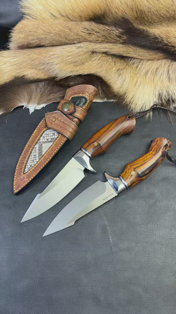 Sheath: Vintage Exquisite Python Skin inlay Tanned Leather Sheath (Handmade sheath, a slight difference is acceptable.)