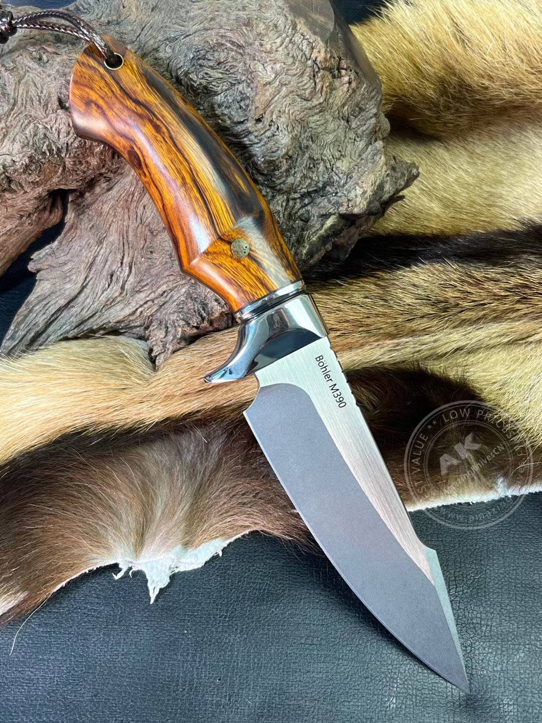 Premium M390 Steel Blade Bowie Knife Fixed Blade Tactical Knife Desert Ironwood with Sheath - AK-HT0644