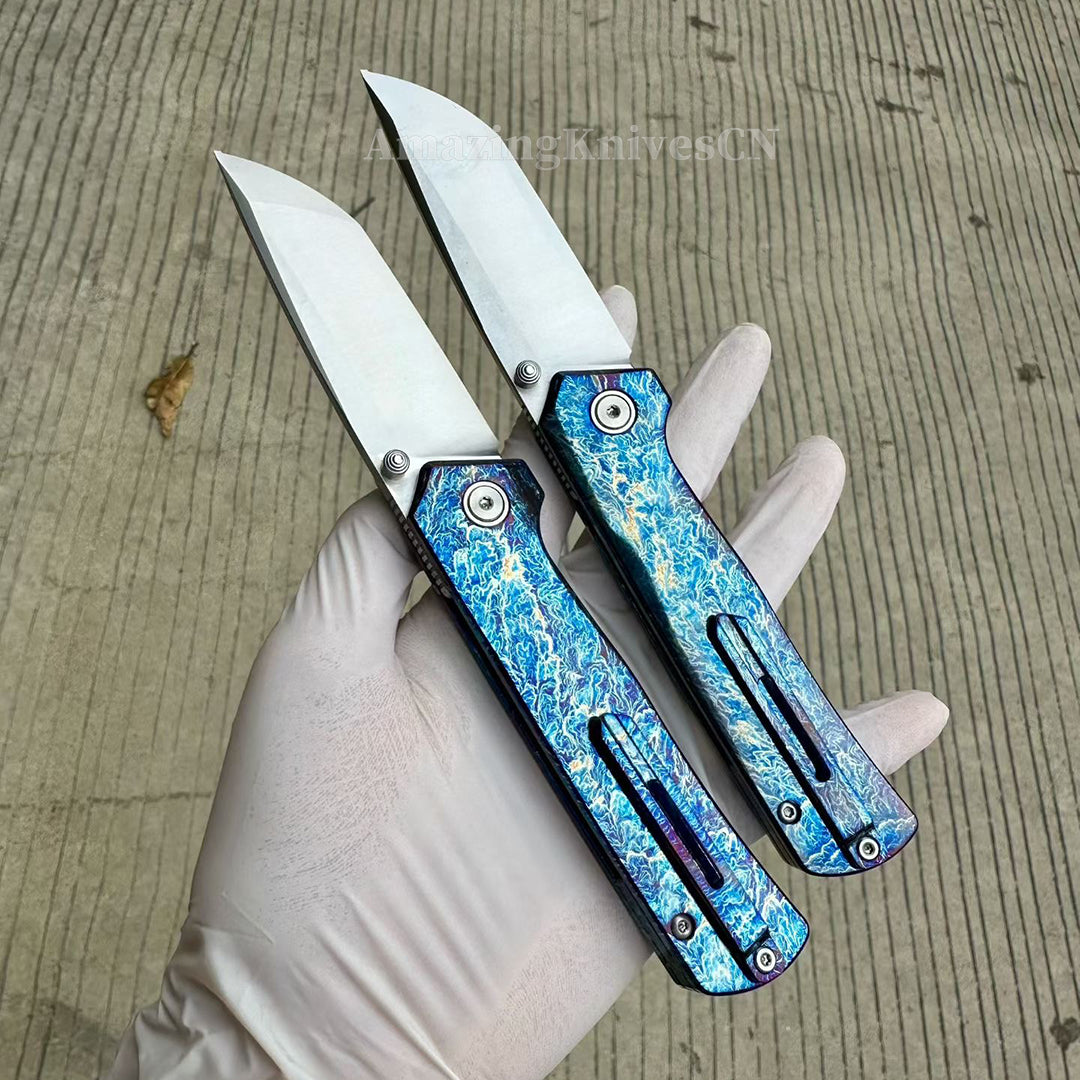 Sandvik 14C28N Steel Steel Pocket Knife Titanium Handle Ball Bearing with Clip - AK-HT1019