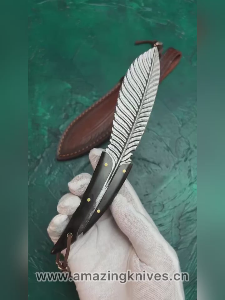 Stainless Steel Knife Feather Knife Fixed Blade Collectible w/ Sheath - AK-HT0510-S