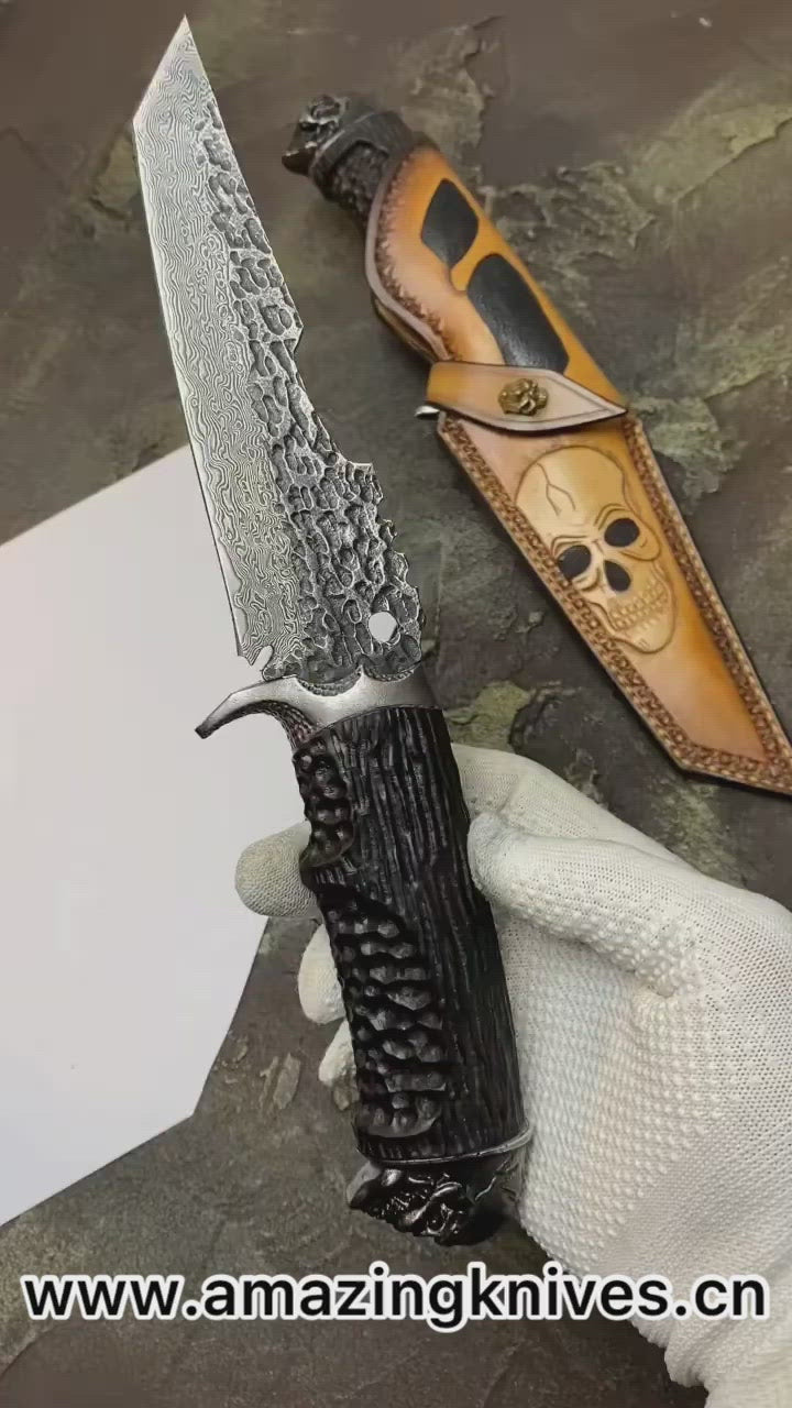 Vg10 Damascus Fixed Blade Hunting Knife Bushcraft Survival Hammered Pattern - AK-HT0761