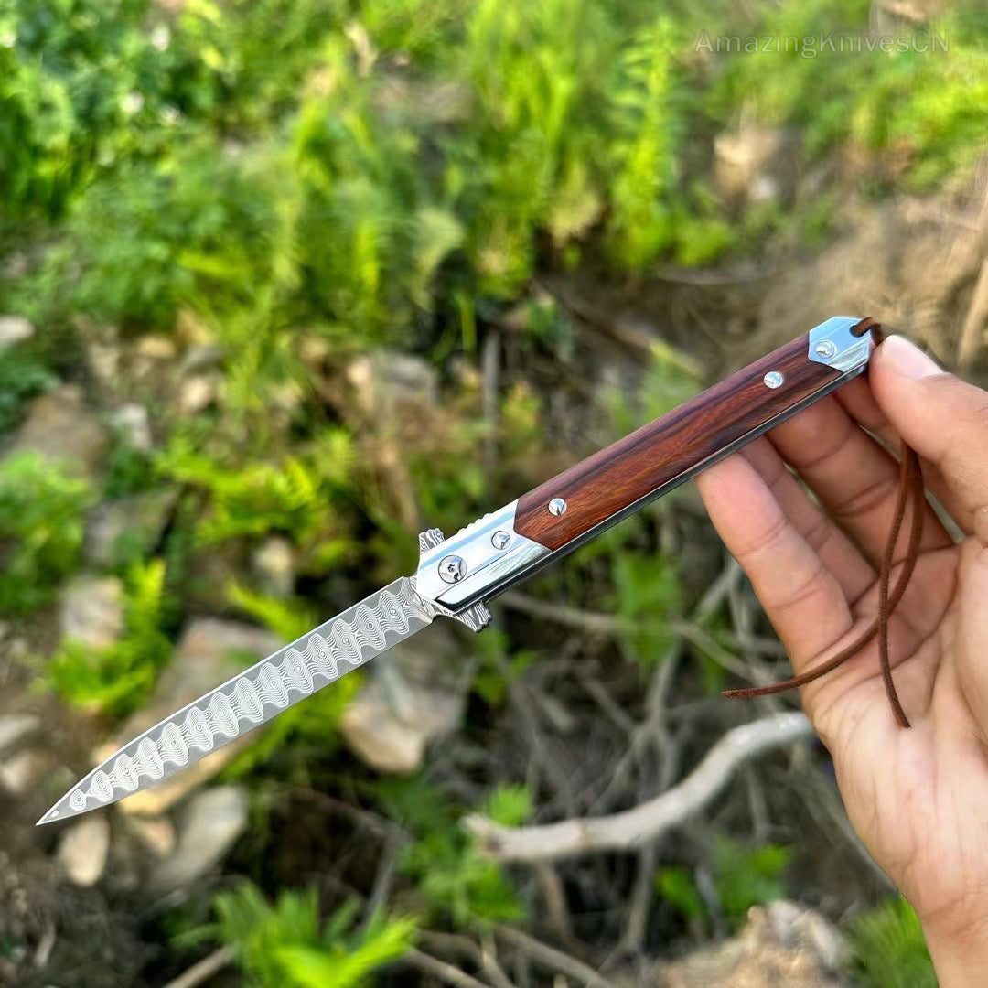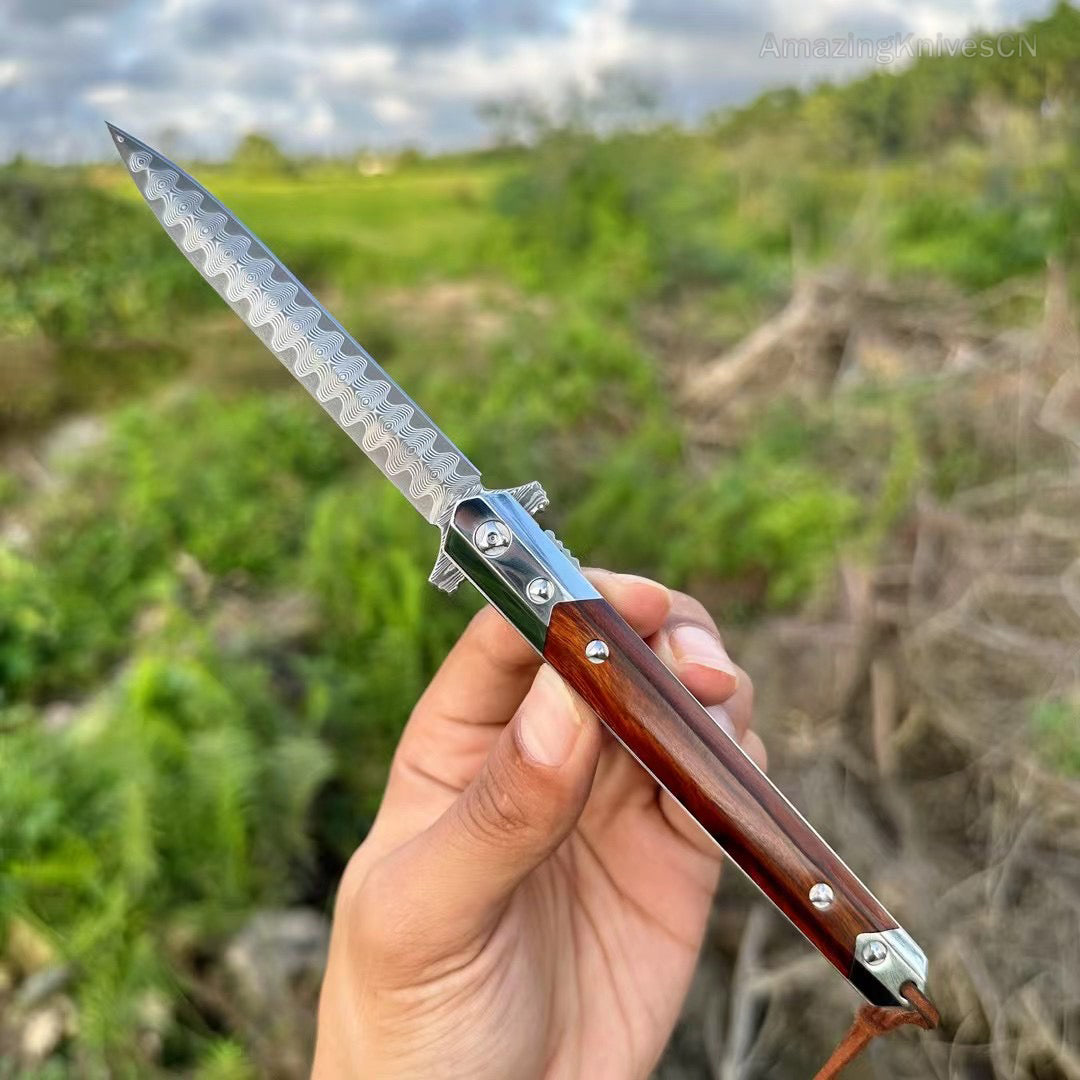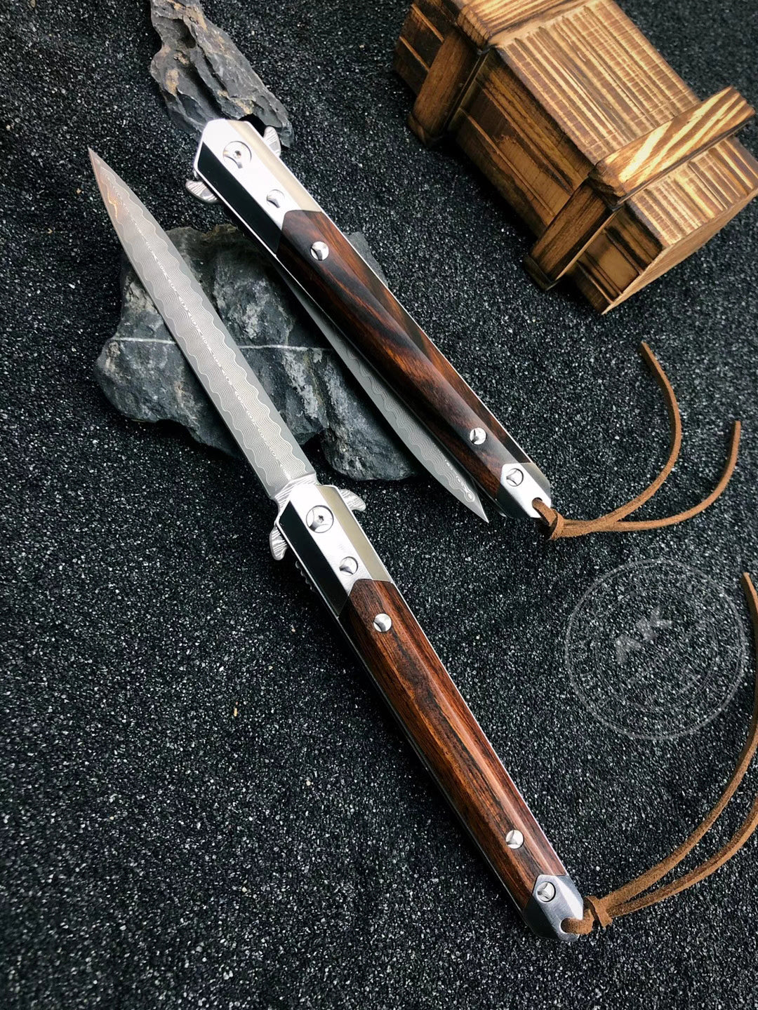 Vg10 Damascus Flipper Knife Folding Blade Tactical Knife Needle Point - AK-HT0590