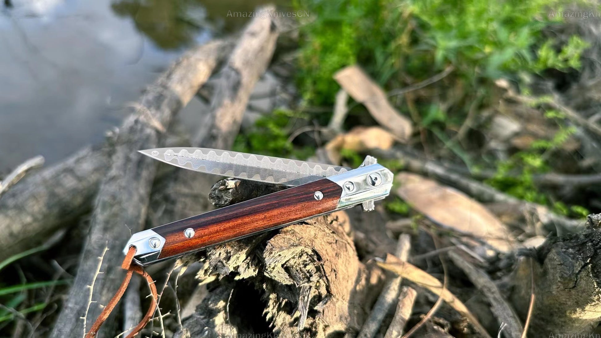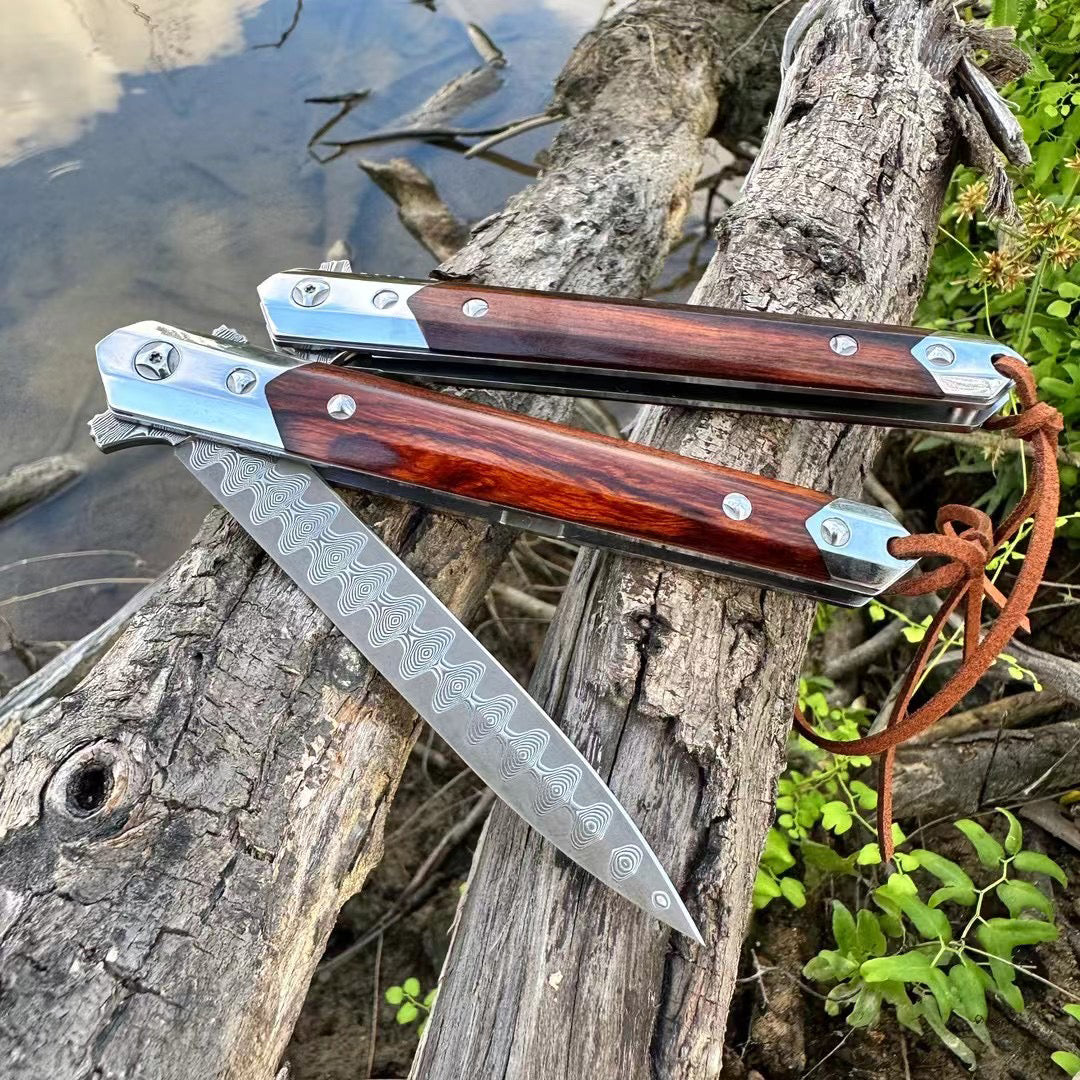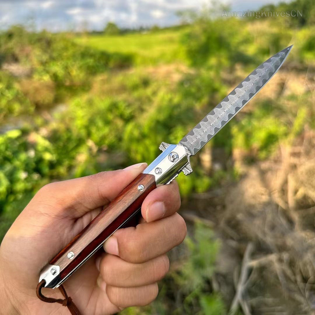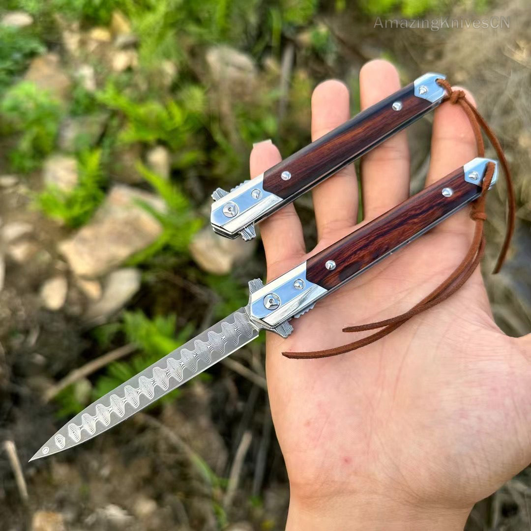 Vg10 Damascus Flipper Knife Folding Blade Tactical Knife Needle Point - AK-HT0590