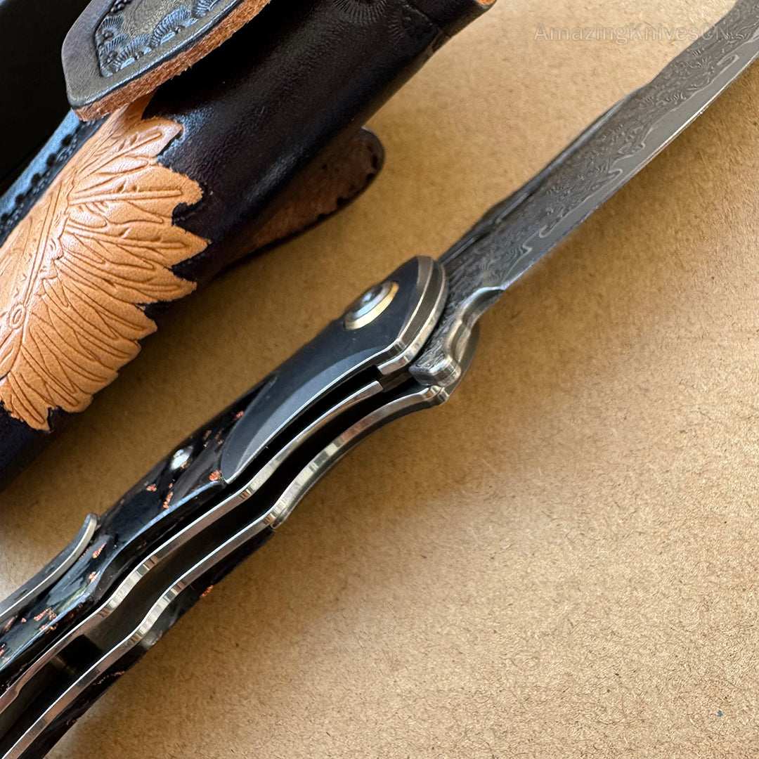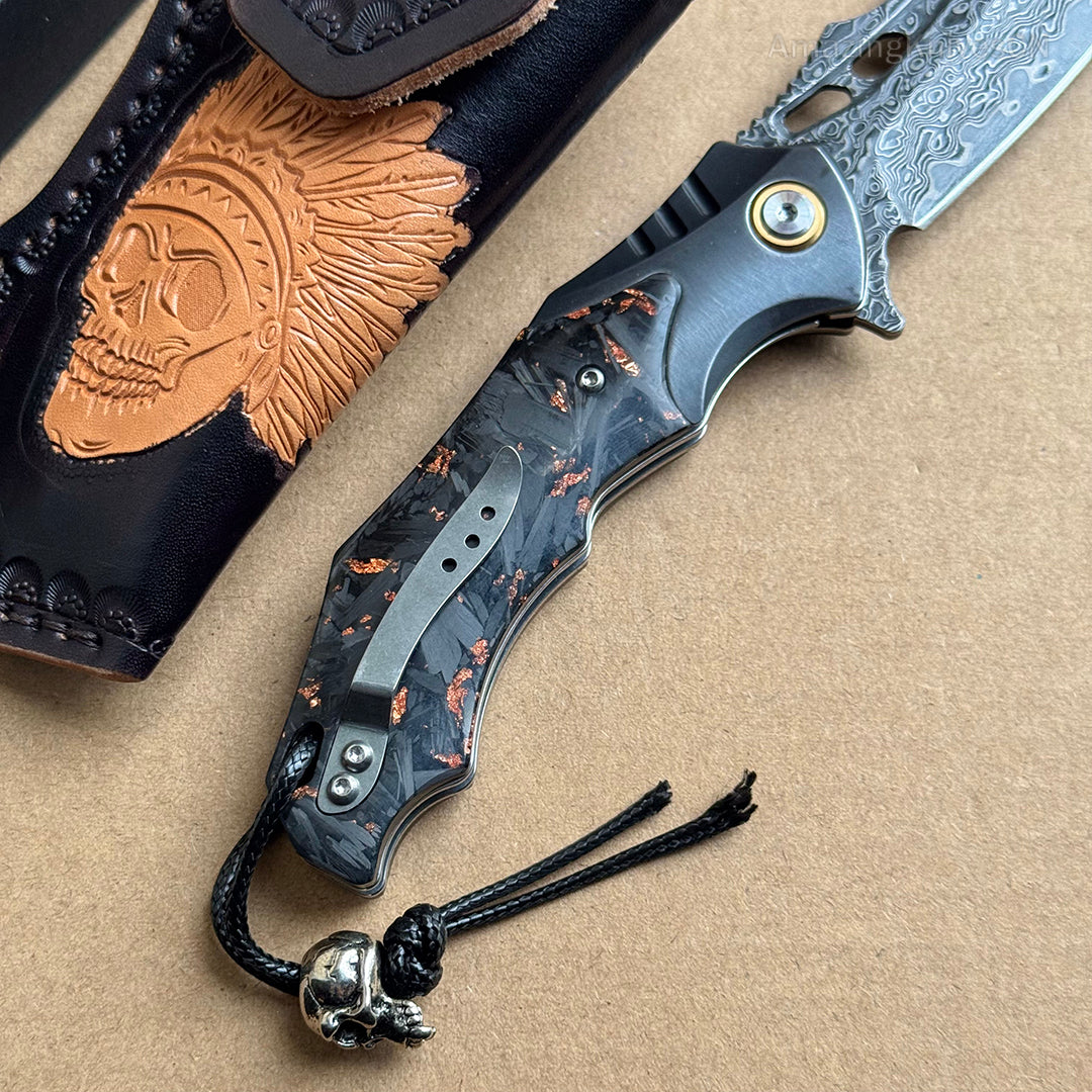 VG10 Damascus Hunting Survival Pocket Knife Carbon Fiber with Clip Ball Bearing - AK-HT0959
