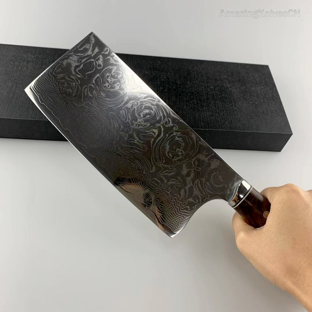 VG10 Damascus Kitchen Knife Cleaver Rose Pattern Blade - AK-DL0909