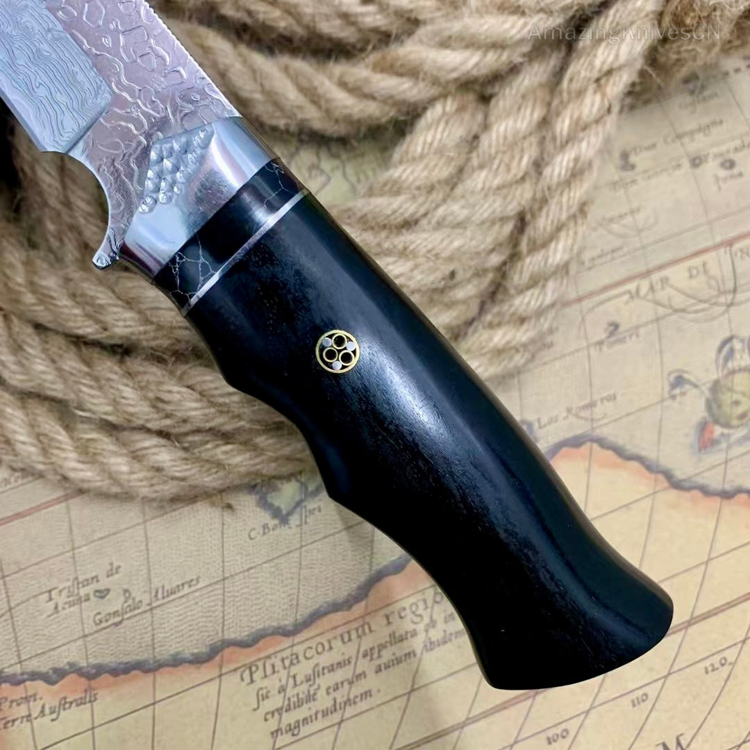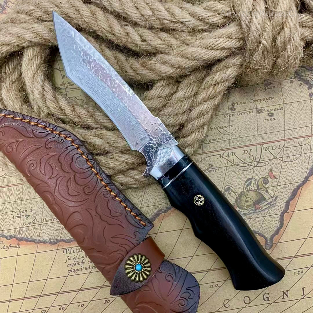 VG10 Damascus Steel Camping Hunting Knife Fixed Blade Wood Handle w/ Sheath - AK-HT0980
