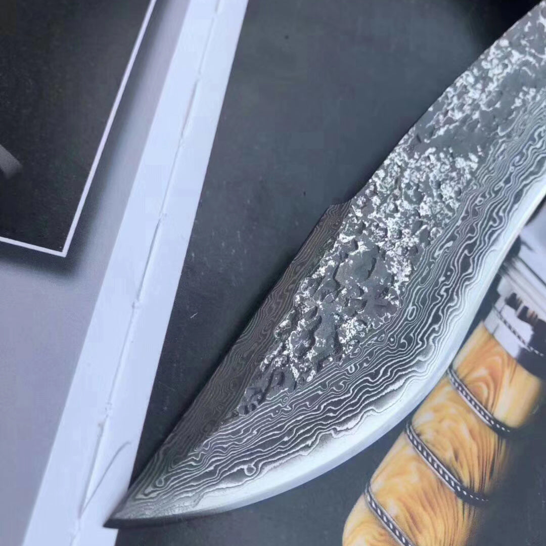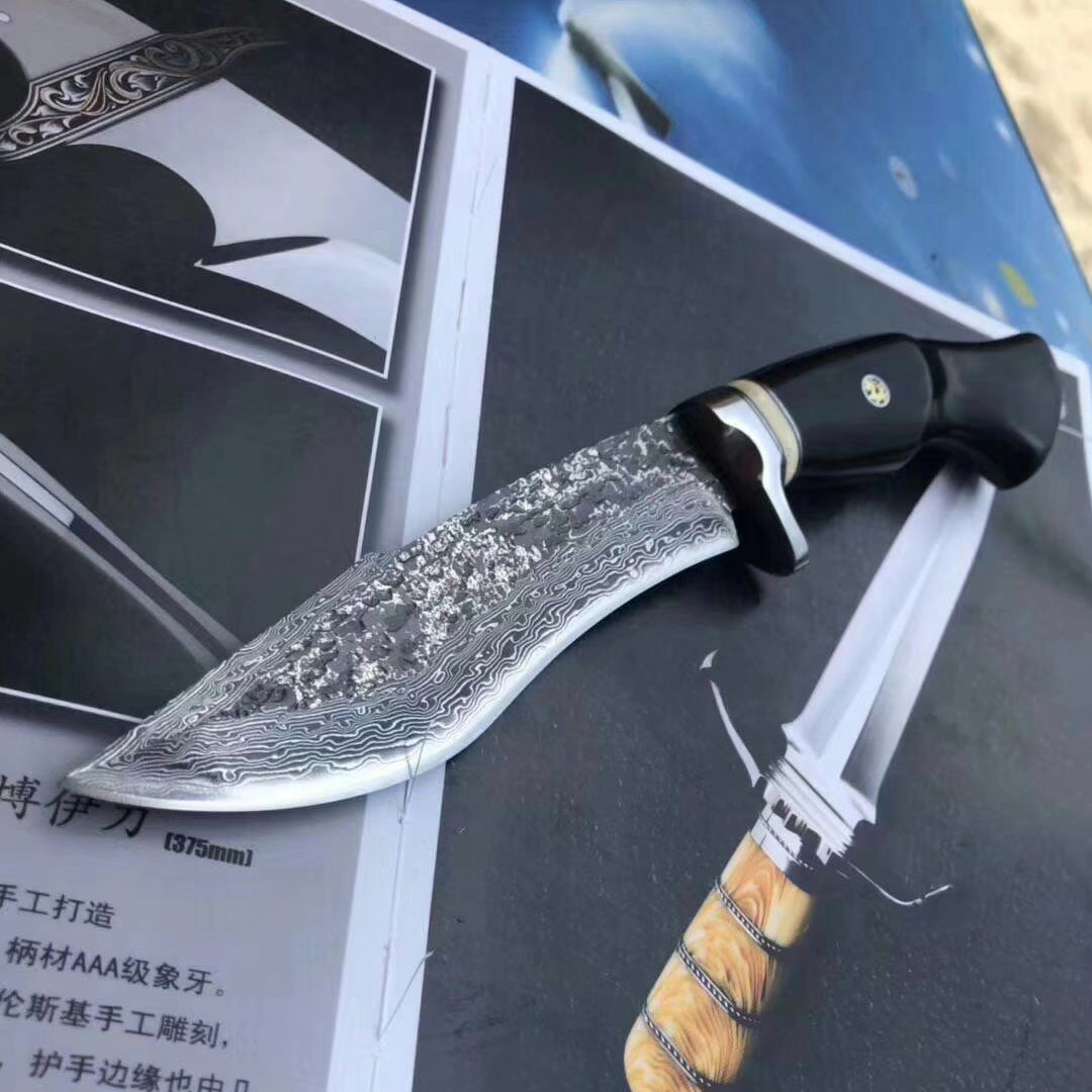 VG10 Damascus Steel Ebony Wood Straight Hunting Outdoor Sheath Camping Gear - AK-HT0677
