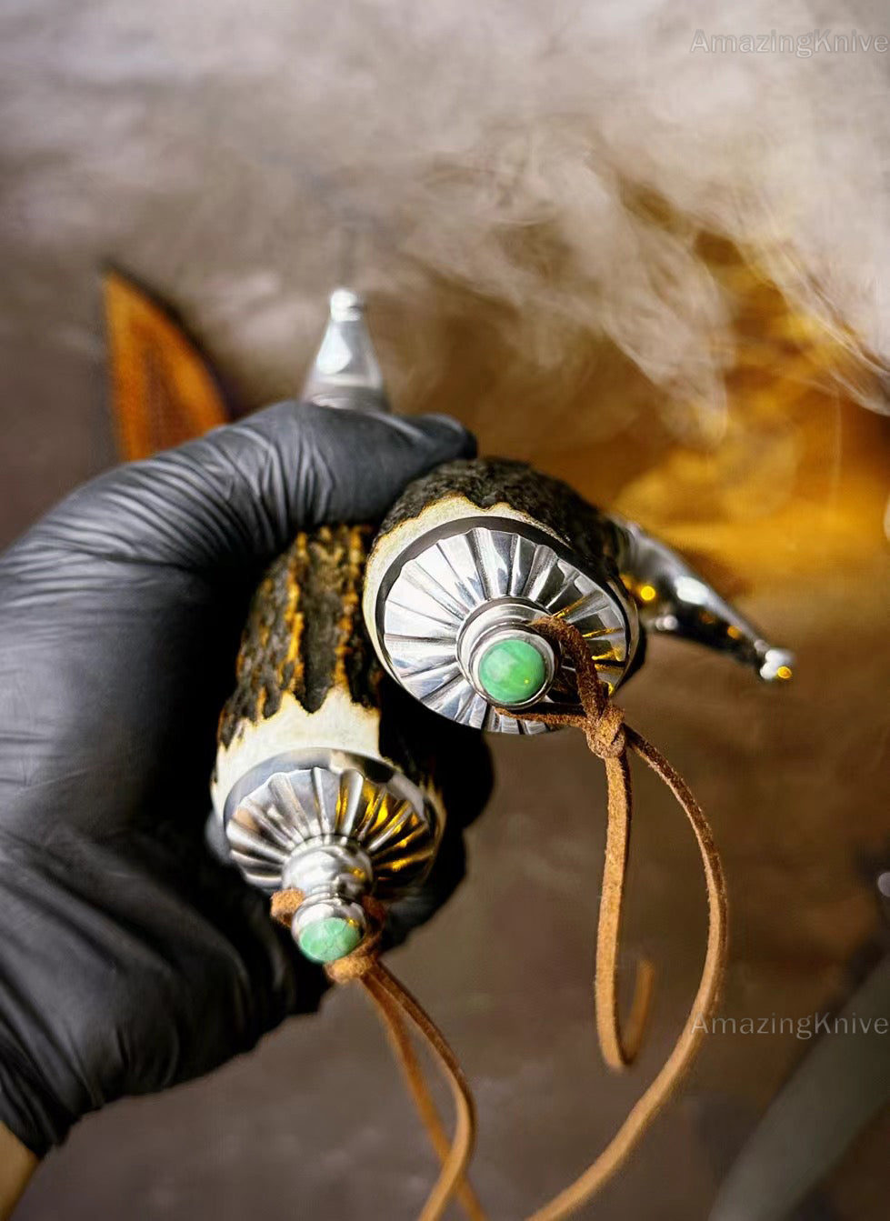 Handle Material: Natural Antlers Horn + Mammoth Molar Fossil