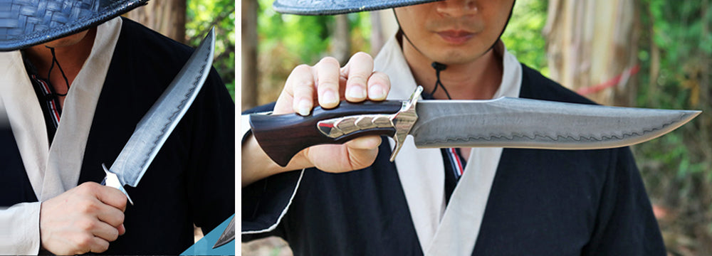 This is a gorgeous knife. Standout-Beautiful Damascus pattern. Ebony handle is nice quality. High quality sheath. Met and exceeded expectations.